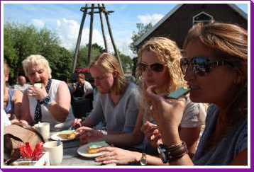 Typisch brabants bestond de dag voornamelijk uit eten, eten en eten en dus gingen de snacks en bitterballen flink in het rond. Het werd een latertje en dus lagen we pas rond 02.00 in bed. We bleven allemaal slapen. Zondagochtend kregen we van Anja een brunch voorgeschoteld en gingen we dus verder waar we gebleven waren; weer eten. De brunch zou niet compleet zijn geweest zonder de brabantse worstebroodjes. Na de brunch is Jantine samen met Emiel een ritje op de moter geweest maken omdat ze dat nog nooit gedaan had en dat wel eens wilde meemaken, zie de video.....