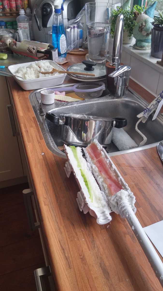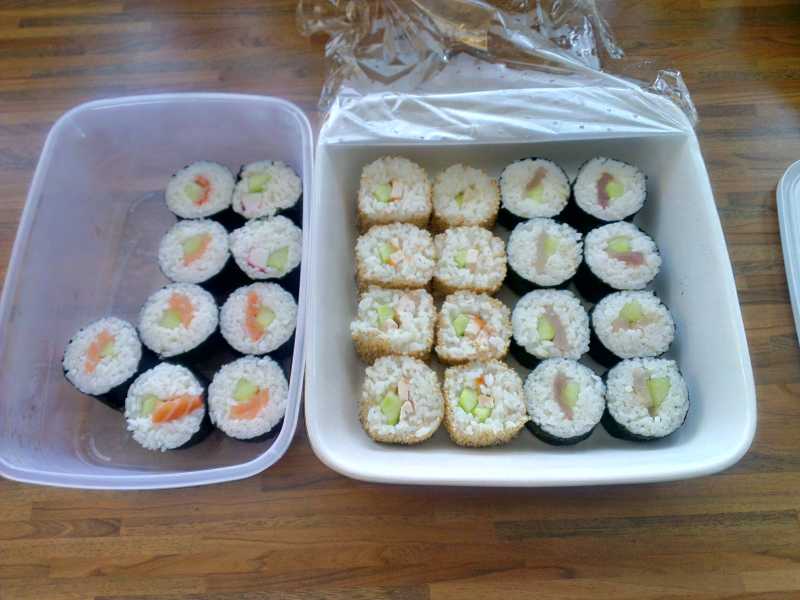 28 december: Vandaag hadden we afgesproken bij Oemesh & Djoemita in Den Haag om daar samen met Lucas & Erica weer samen te komen voor een gezellig middagje. Djoemita had flink staan te kokkerellen dus er was voldoende. Erik had 's-ochtend thuis sushi gemaakt en dat was ook meegenomen, zie onderstaande foto. Helaas bleek Erik zijn maag een beetje van streek en was eten daarom niet zo'n goed idee. Dus na het voorgerecht werd het hoofdgerecht overgeslagen. Het werd een gezellige middag en avond.