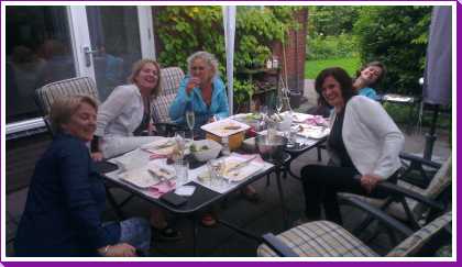 11 juli: Jantine had vanavond een BBQ met de dames uit haar tennisteam. Het weer werkte mee dus ze konden lekker buiten zitten.....