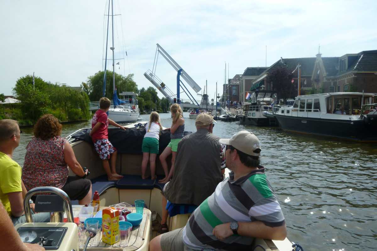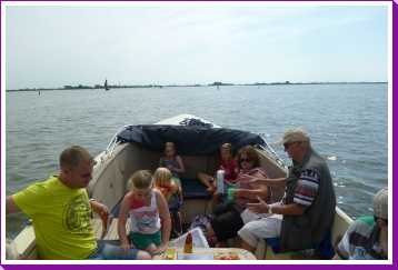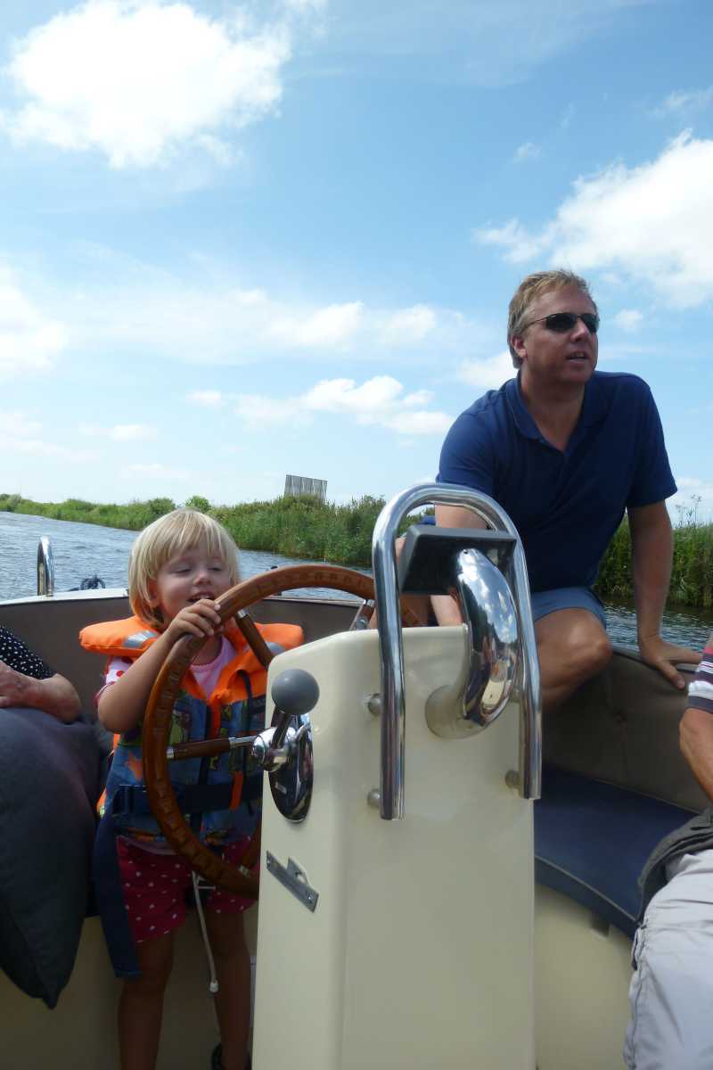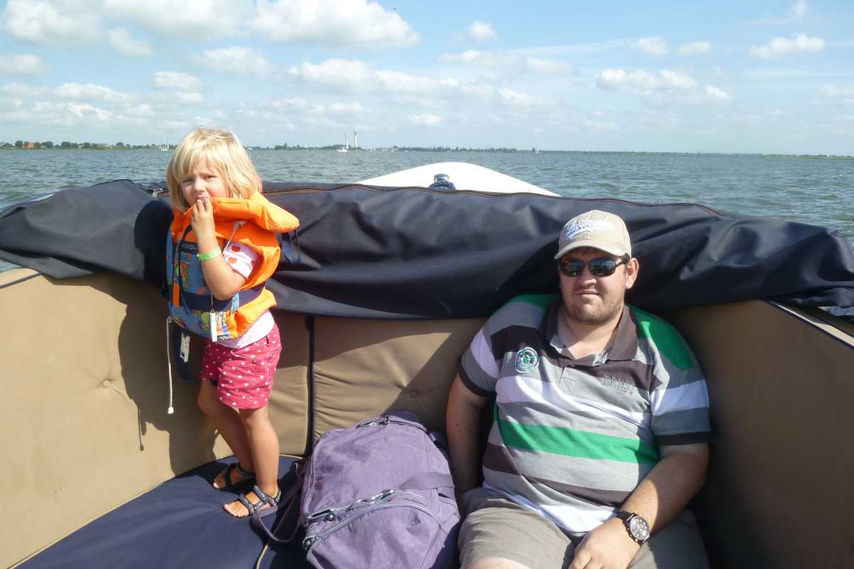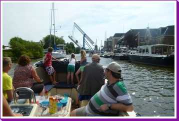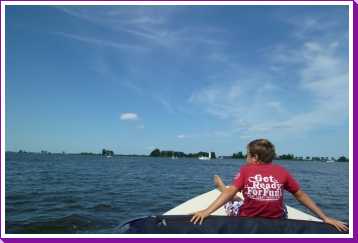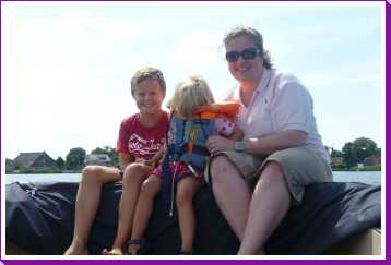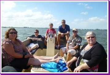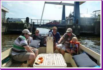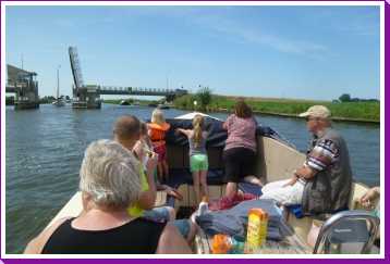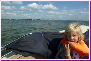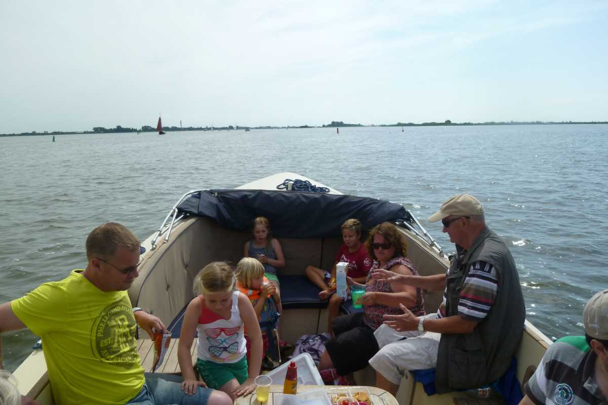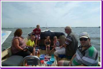 3 augustus: Vanochtend zijn we al op tijd richting Lemmer gereden omdat we van daaruit een dagje zouden gaan varen met een gehuurde sloep, dit ter gelegenheid van de verjaardag van Marlou tezamen met die van Jantine's moeder (die eigenlijk in oktober jarig is). Het was mooi weer en dus hebben we lekker in een T-shirt aan boord gezeten tijdens de tocht.