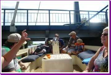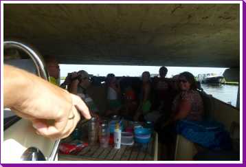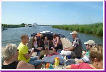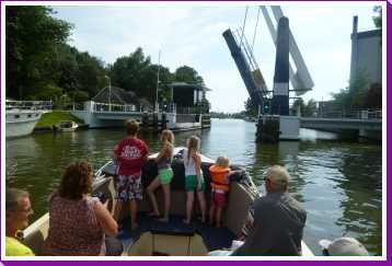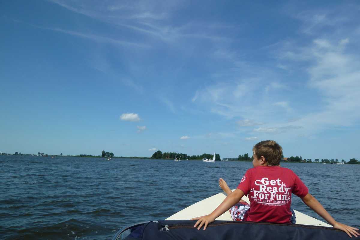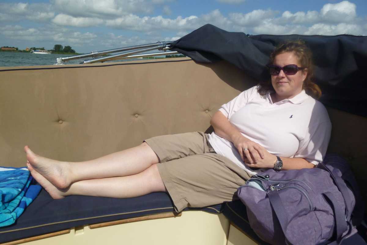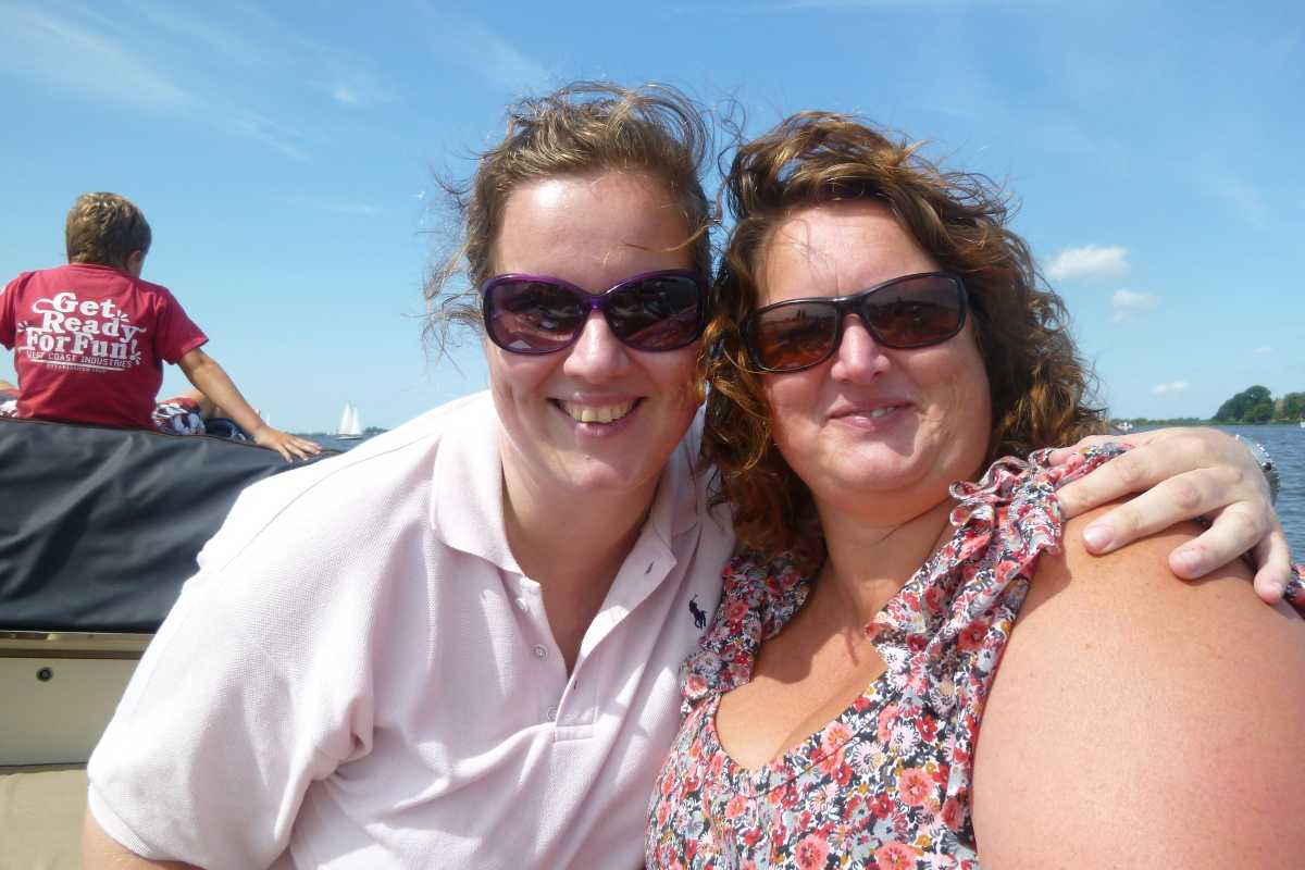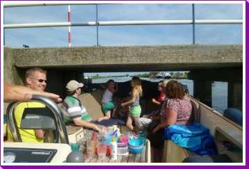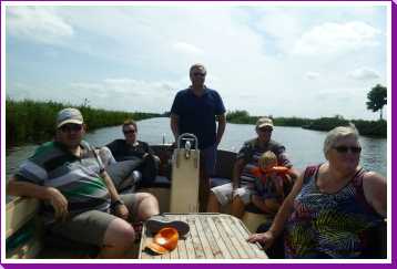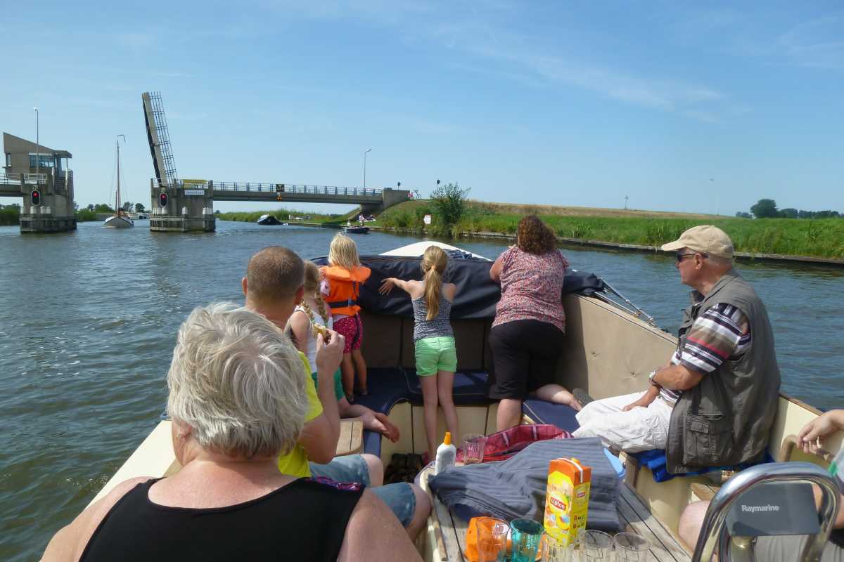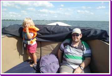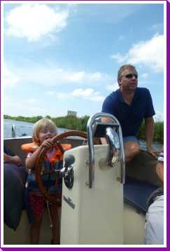 3 augustus: Vanochtend zijn we al op tijd richting Lemmer gereden omdat we van daaruit een dagje zouden gaan varen met een gehuurde sloep, dit ter gelegenheid van de verjaardag van Marlou tezamen met die van Jantine's moeder (die eigenlijk in oktober jarig is). Het was mooi weer en dus hebben we lekker in een T-shirt aan boord gezeten tijdens de tocht.