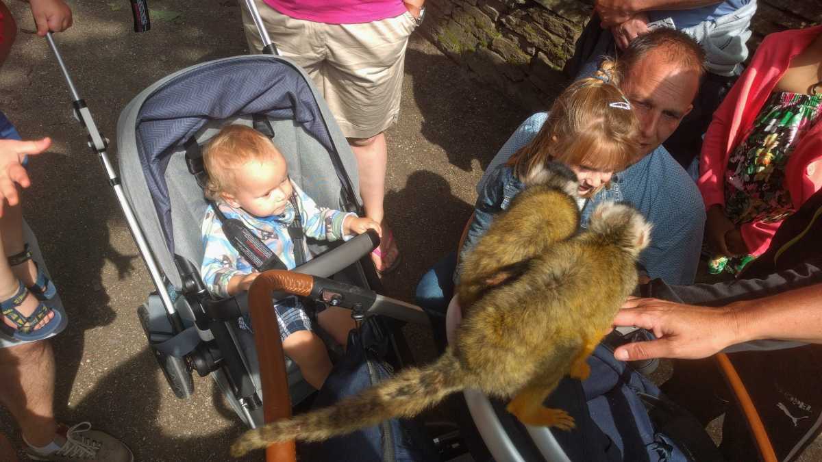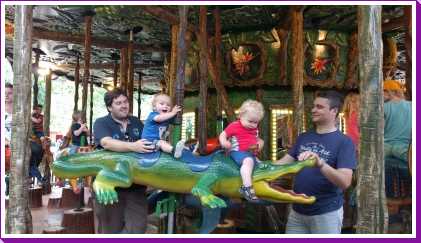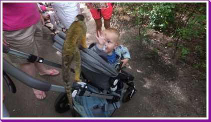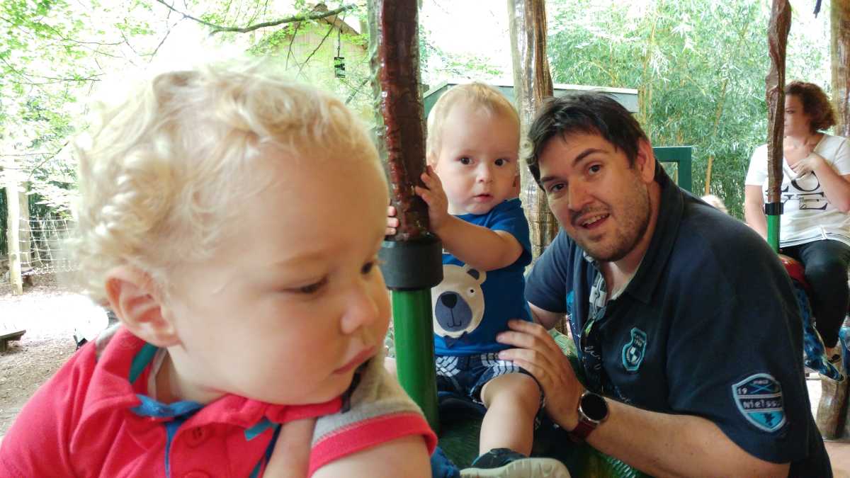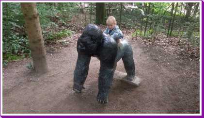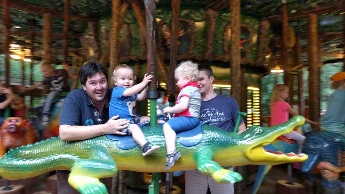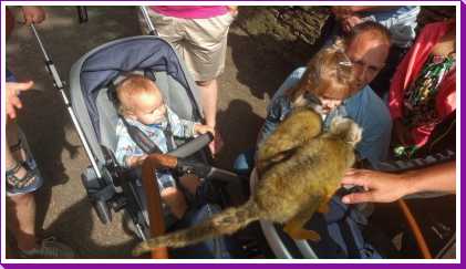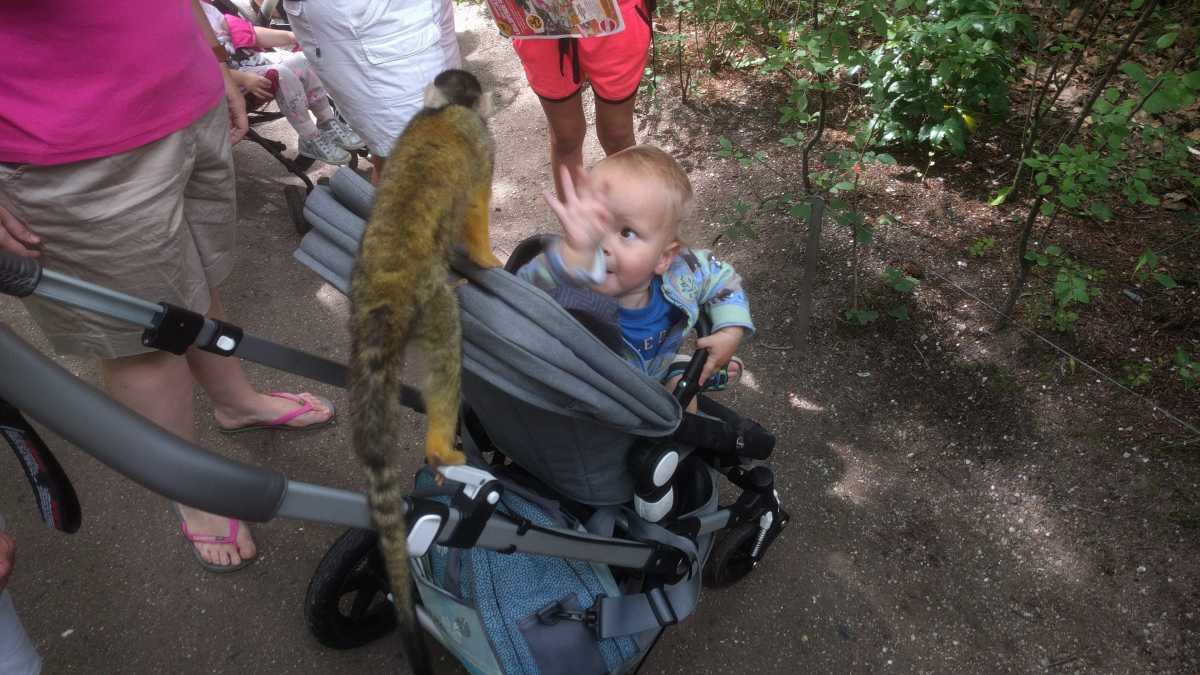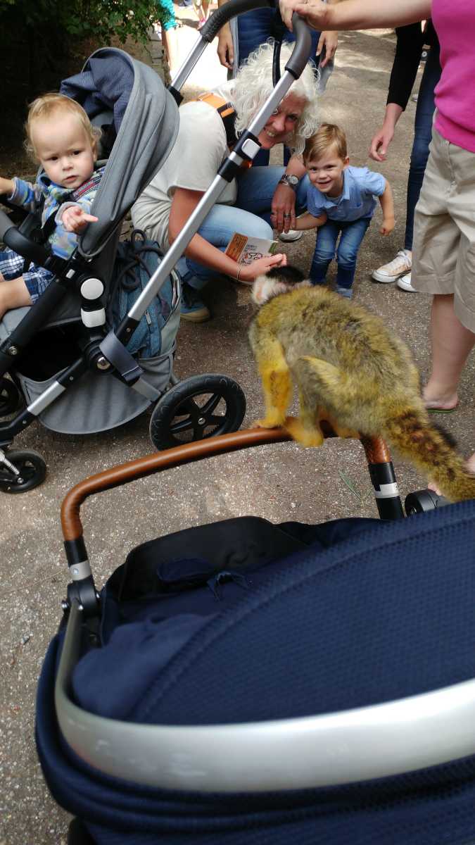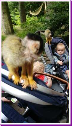 De dag erop hebben we eerst ontbeten om daarna naar de Apenheul in Apeldoorn te rijden. Hier keken Youp en Lars hun ogen uit, zeker bij de doodshoofdaapjes die los rond lopen daar. Ook al werd het halverwege de middag, de beiden weigerden in slaap te vallen met al dat leuks dat bekeken moest worden. En we konden daar ook op de carousel, dat vonden beiden erg leuk. Aangezien Patrick nog naar een zaakje in Apeldoorn wilde zijn wij apart al terug naar het huisje gereden zodat Youp daar toch nog een tukje kon doen. Toen de andere terug kwamen was er weer herrie in huis en was het over met Youp z'n slaapje (het was super gehorig). Dus toen zijn we maar even gaan zwemmen. Daarna hebben we bij de patatzaak van Landal dus maar patatjes, frikandellen en kroketjes gehaald om in het huisje op te eten. Toen de heren eenmaal op bed lagen hebben we een poging gedaan tot het begrijpen van een engelstalig bordspel dat Bieneke had meegenomen. Na drie kwartier opzetten en uitpuzzelen hoe het moest hebben we het opgegeven en werd het toch weer 'Love Letter'.