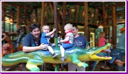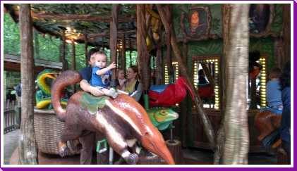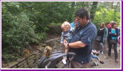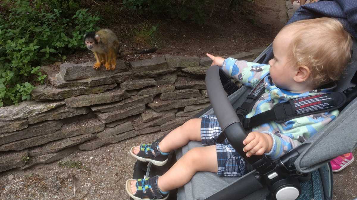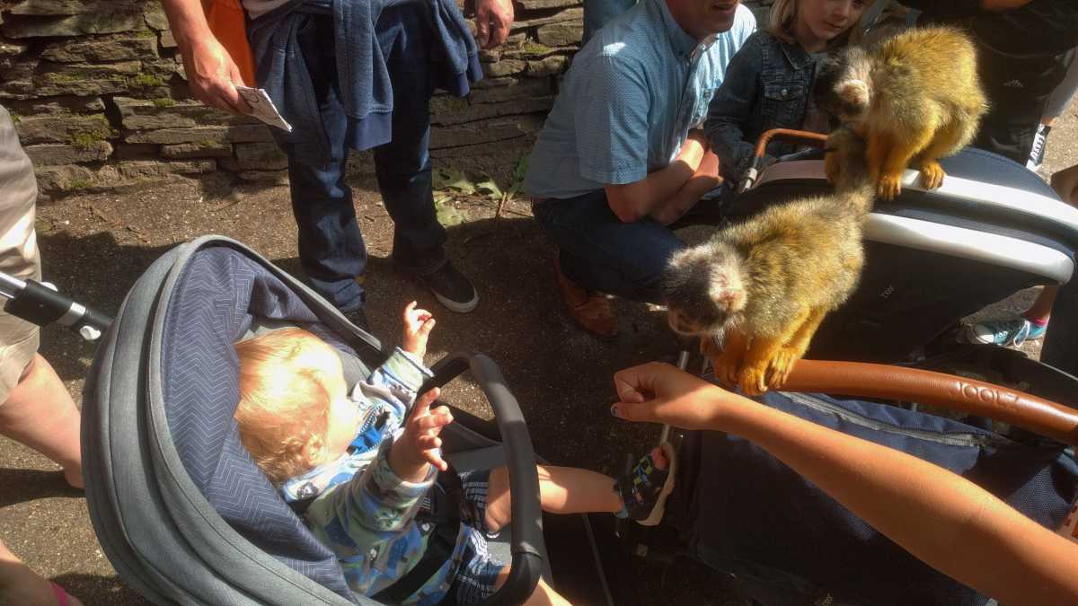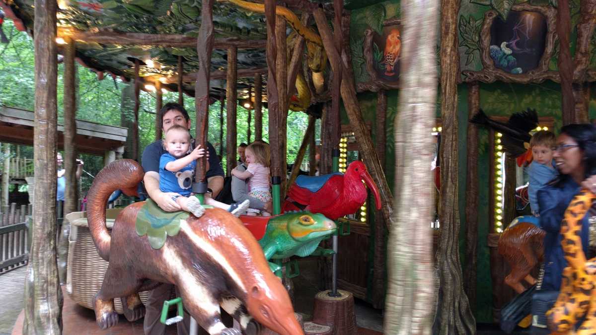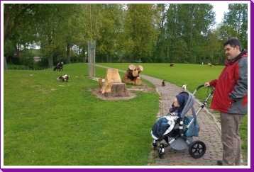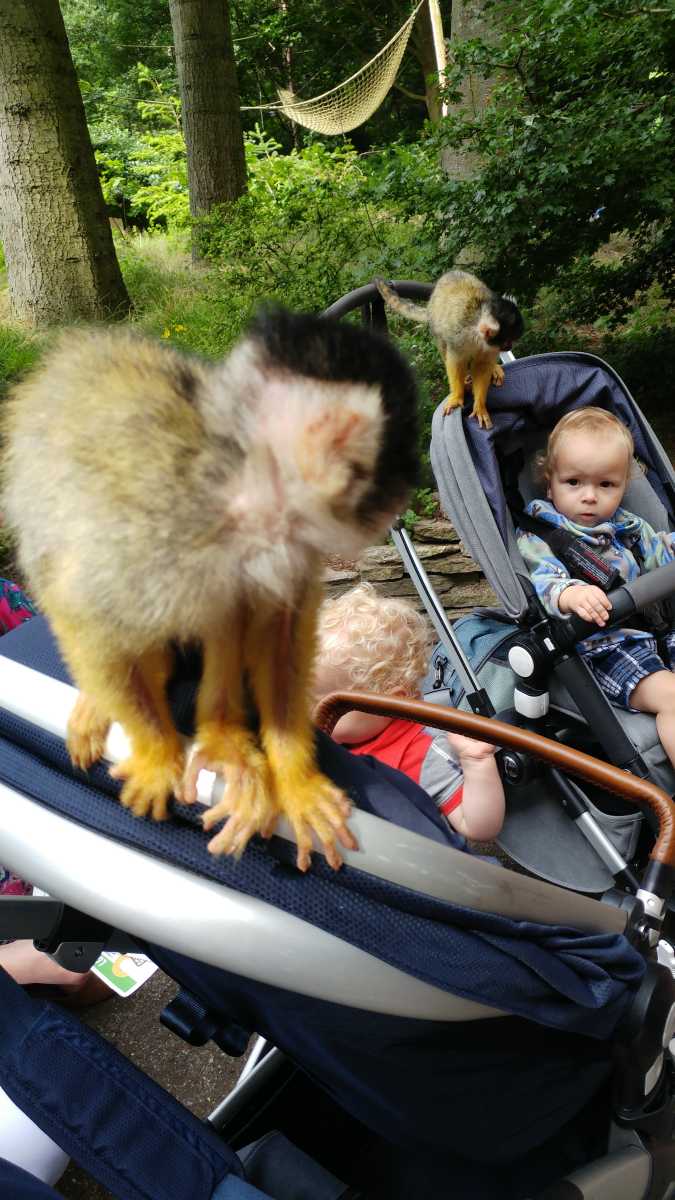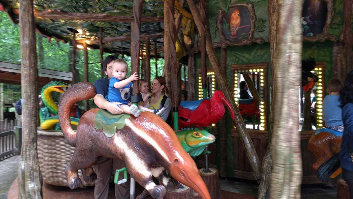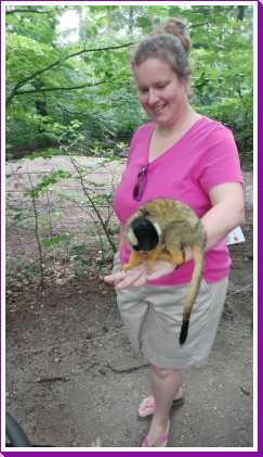 De dag erop hebben we eerst ontbeten om daarna naar de Apenheul in Apeldoorn te rijden. Hier keken Youp en Lars hun ogen uit, zeker bij de doodshoofdaapjes die los rond lopen daar. Ook al werd het halverwege de middag, de beiden weigerden in slaap te vallen met al dat leuks dat bekeken moest worden. En we konden daar ook op de carousel, dat vonden beiden erg leuk. Aangezien Patrick nog naar een zaakje in Apeldoorn wilde zijn wij apart al terug naar het huisje gereden zodat Youp daar toch nog een tukje kon doen. Toen de andere terug kwamen was er weer herrie in huis en was het over met Youp z'n slaapje (het was super gehorig). Dus toen zijn we maar even gaan zwemmen. Daarna hebben we bij de patatzaak van Landal dus maar patatjes, frikandellen en kroketjes gehaald om in het huisje op te eten. Toen de heren eenmaal op bed lagen hebben we een poging gedaan tot het begrijpen van een engelstalig bordspel dat Bieneke had meegenomen. Na drie kwartier opzetten en uitpuzzelen hoe het moest hebben we het opgegeven en werd het toch weer 'Love Letter'.