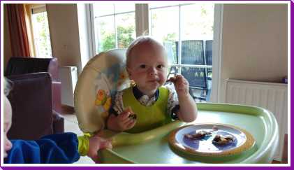31 juli: Aan het eind van de middag nadat de Formule 1 op TV was afgelopen, zijn we geweest BBQ-en bij Gert-Jan, Laura en Elin. Hier waren ook de andere stellen van de zwangerschapsgym, namelijk Patrick, Bieneke & Lars, William, Judith & Liam en Edwin, Florentine & Alysa waren. Het weer werkte mee dus konden we lekker buiten zitten, al keken er twee binnen ook nog even voerbal. De kids vermaakte zich wel want er was genoeg speelgoed voorhanden. Youp vond met name het speelkasteel erg leuk maar toen de BBQ daadwerkelijk aan ging was hij er wel als de kippen bij om kipspiesjes, hamburgers, stokbrood, meloen en ananas te komen eten. Het toetje van meringue met rode bessen ging er ook duidelijk wel in.