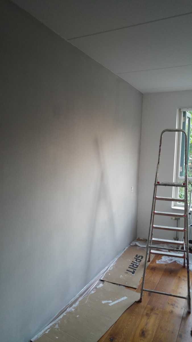 12 december: Inmiddels is het kozijn op Youp z'n nieuwe kamer ook voor de 2e keer geschilderd en dus af. De muren zijn verder voorbereid om geverft te worden. Bijna klaar.....