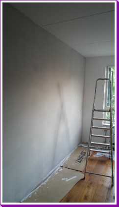 15 december: De latex dekt gelukkig de 1e keer en dus kon vanochtend de wand worden behangen. Daarna weer verder met thuiswerken.......