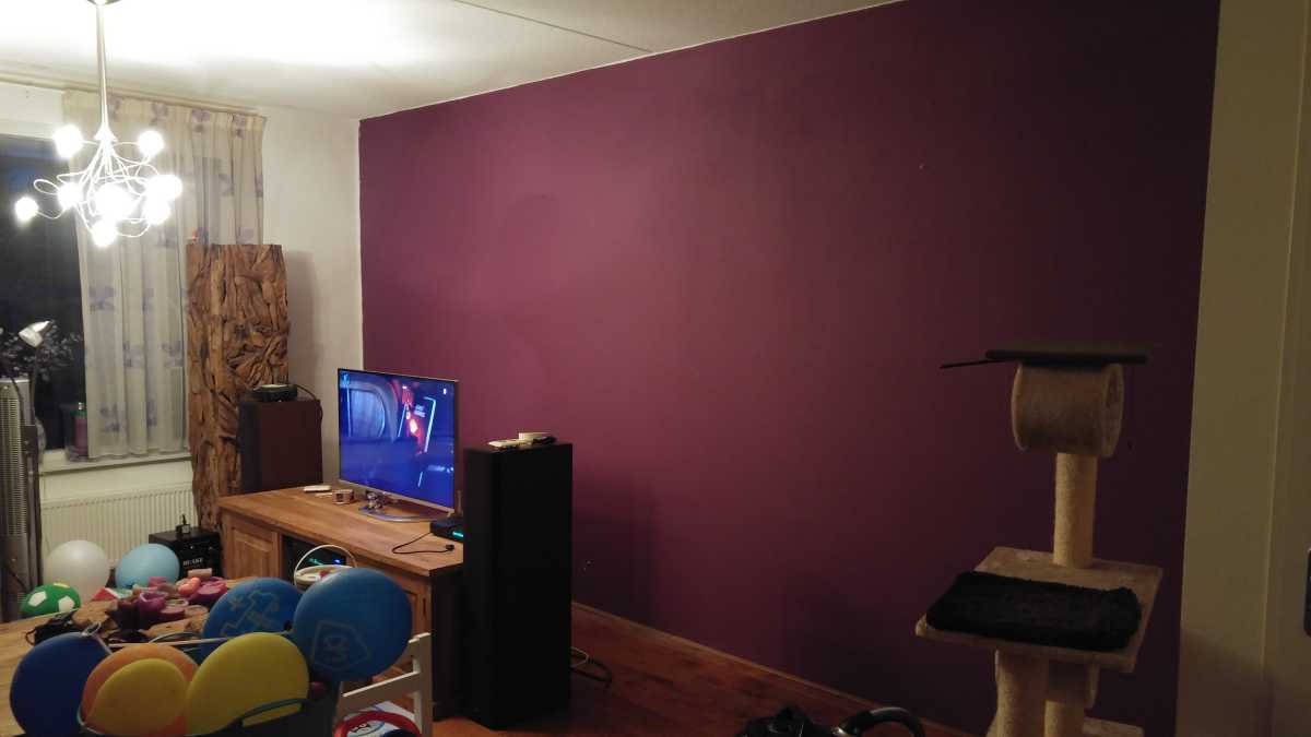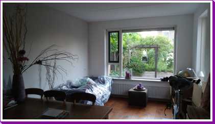 2 augustus: Jantine heeft vandaag de laatste muur in de woonkamer die nu nog paars was geschild waarna hij eerst wit werd en na de tweede keer meer taupe (heel licht bruinig). Onderstaand de 'voor' en 'na' foto's......
