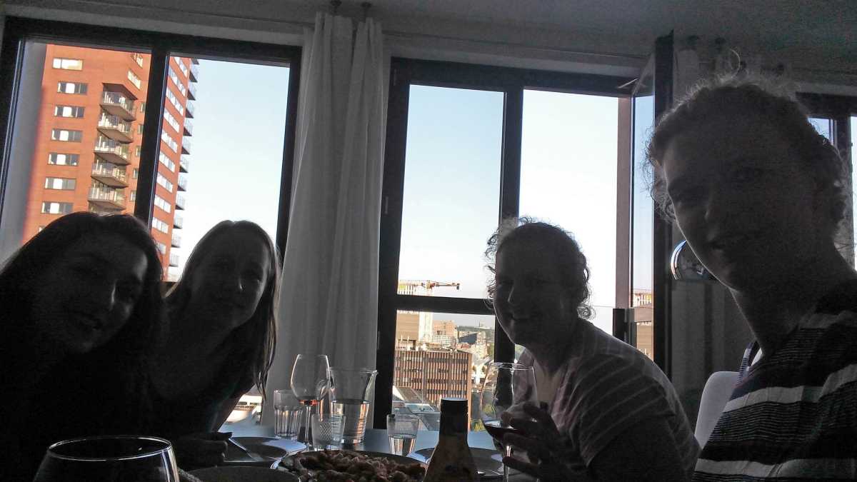 24 juni: Jantine had vanavond een etentje bij Karin Knegt, één van de dames van de naaiclub. Zij woont in het centrum van Rotterdam en heeft vanuit haar appartement een mooi uitzicht over Rotterdam.