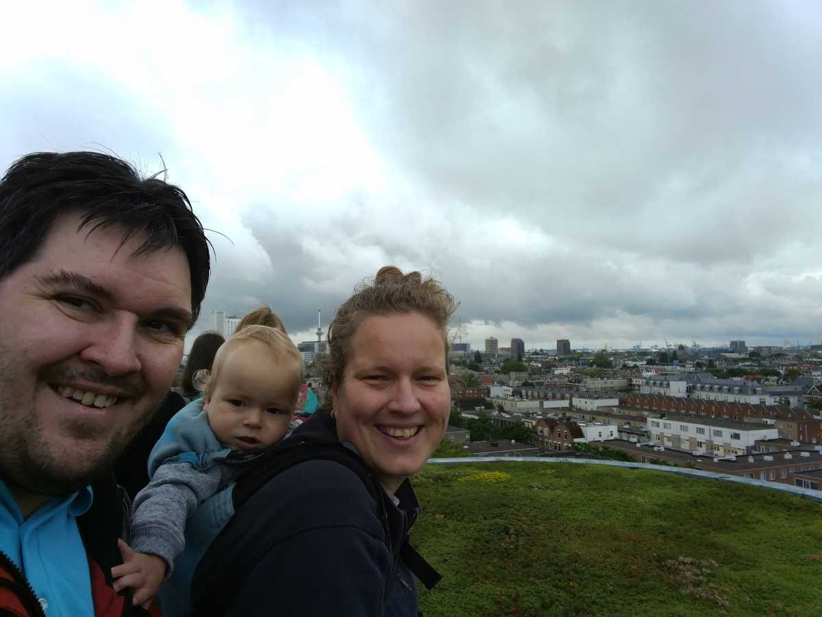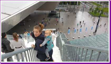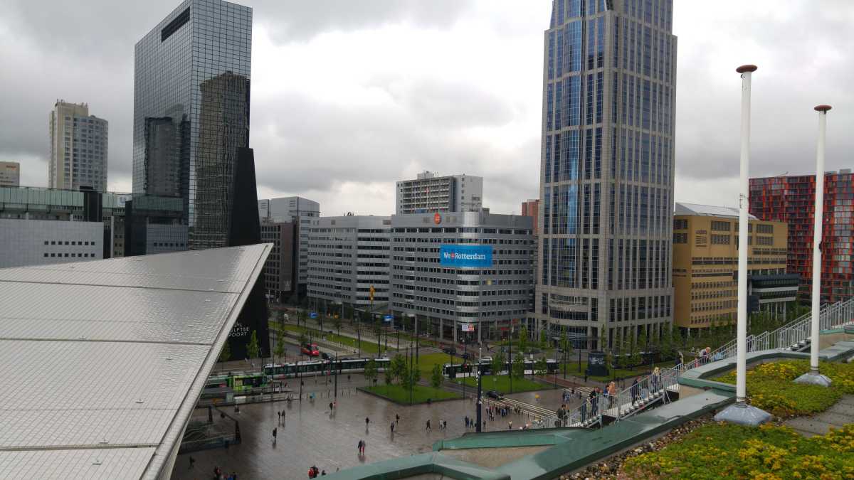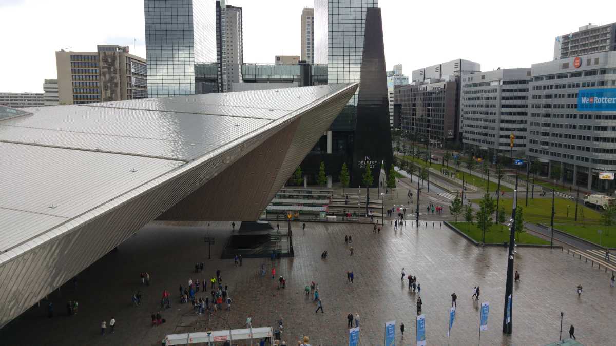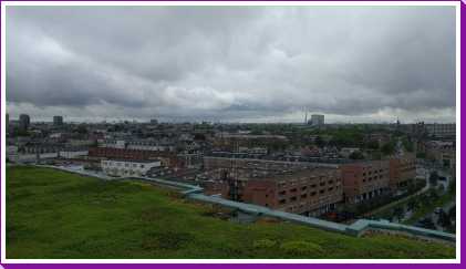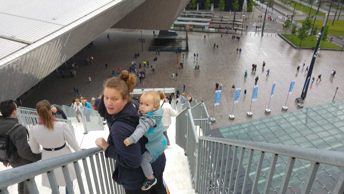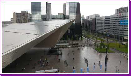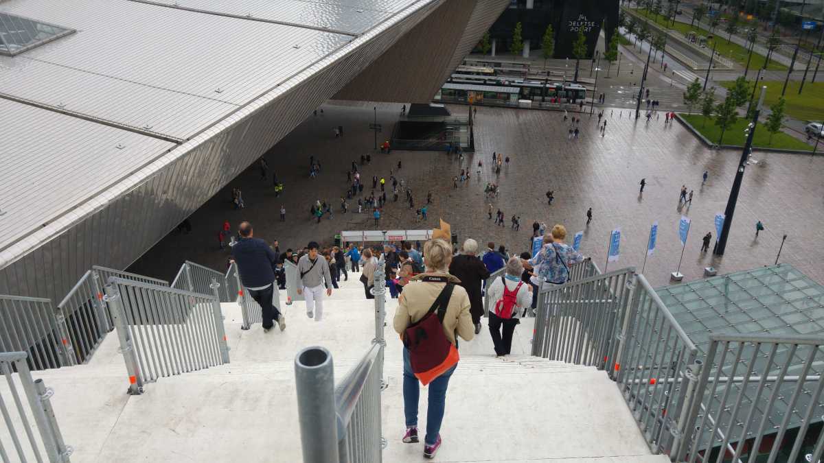 18 juni: Op de valreep zijn we toch nog maar even naar Rotterdam gereden om bij het centraal station de tijdelijke trap tegen het groothandelsgebouw te beklimmen. Eenmaal boven bleek dat het gehele dak van het groothandelsgebouw opgesteld was en niet slechts een stukje. Het leverde enkele leuke plaatjes op. Dit soort kunstprojecten zijn echt leuk om te bezoeken en bieden echt iets voor iedereen.
