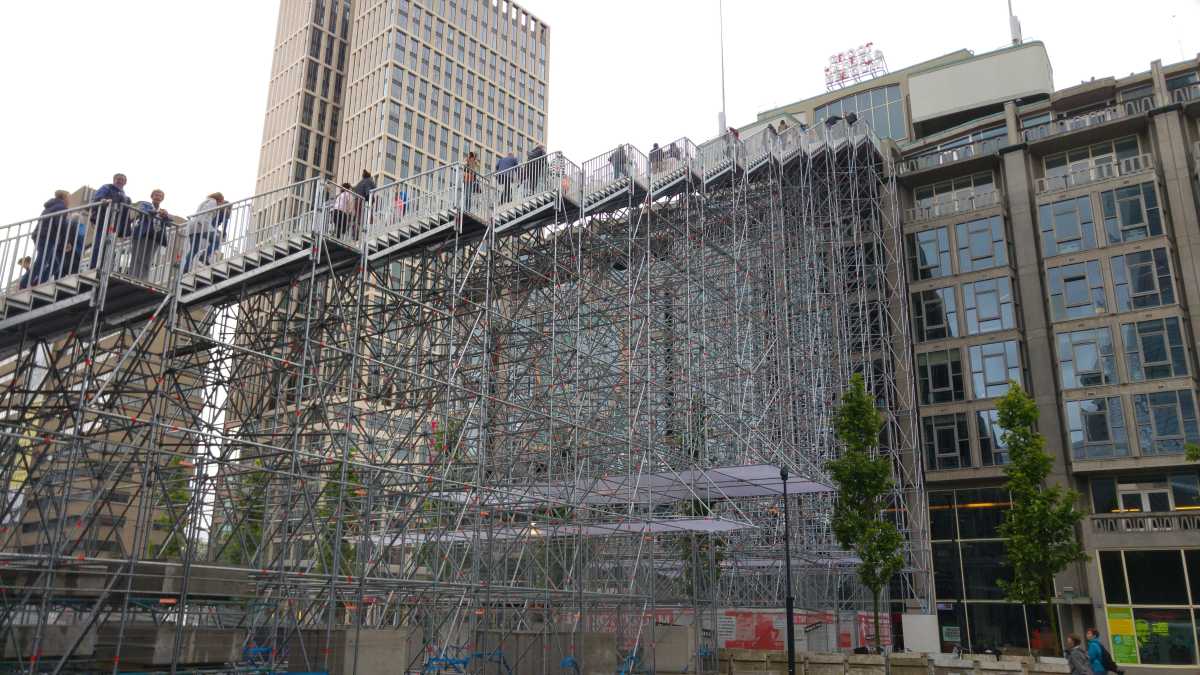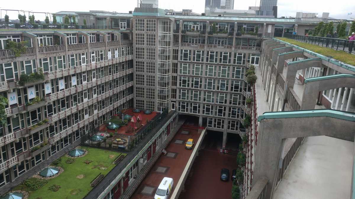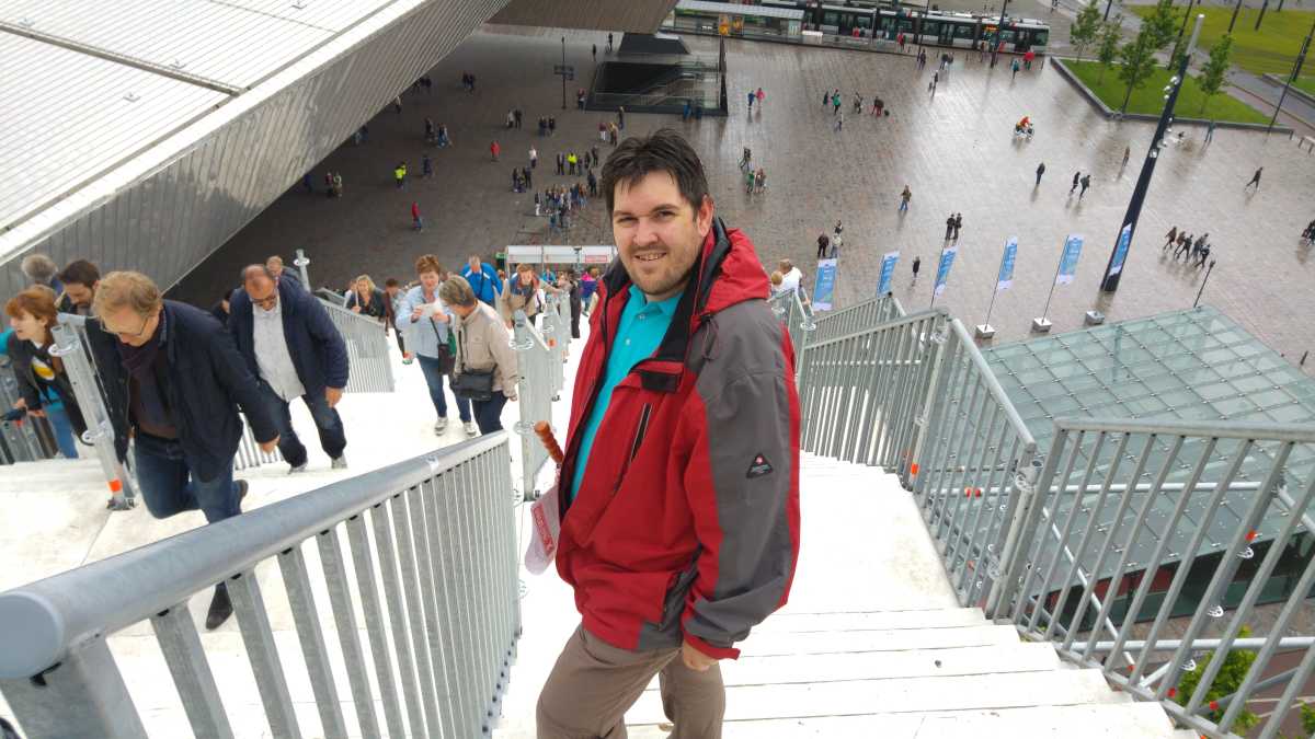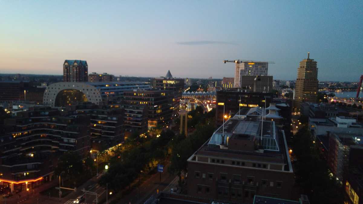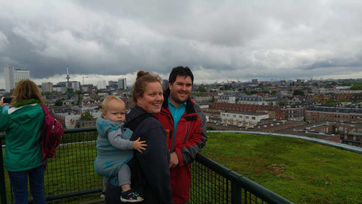 18 juni: Op de valreep zijn we toch nog maar even naar Rotterdam gereden om bij het centraal station de tijdelijke trap tegen het groothandelsgebouw te beklimmen. Eenmaal boven bleek dat het gehele dak van het groothandelsgebouw opgesteld was en niet slechts een stukje. Het leverde enkele leuke plaatjes op. Dit soort kunstprojecten zijn echt leuk om te bezoeken en bieden echt iets voor iedereen.