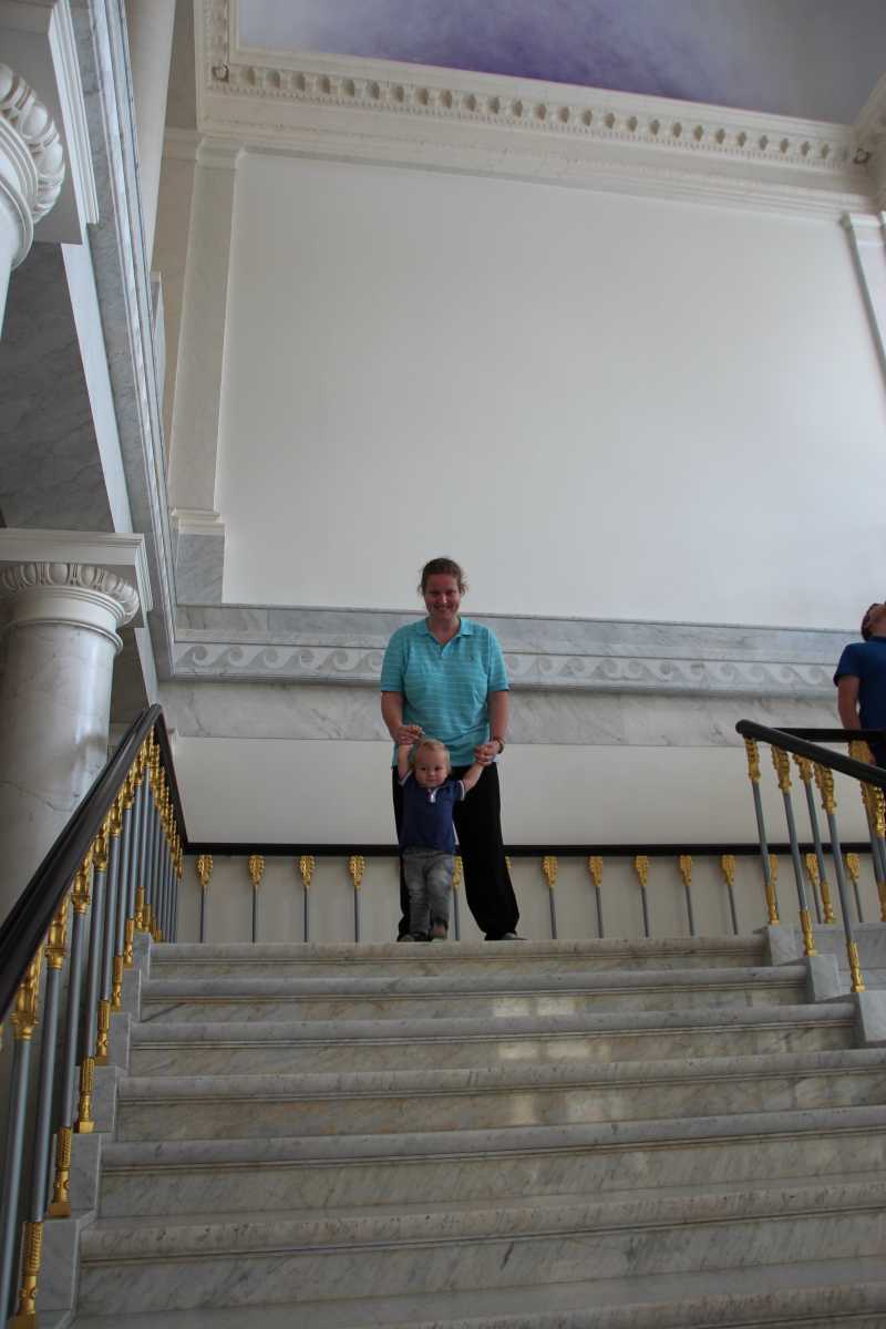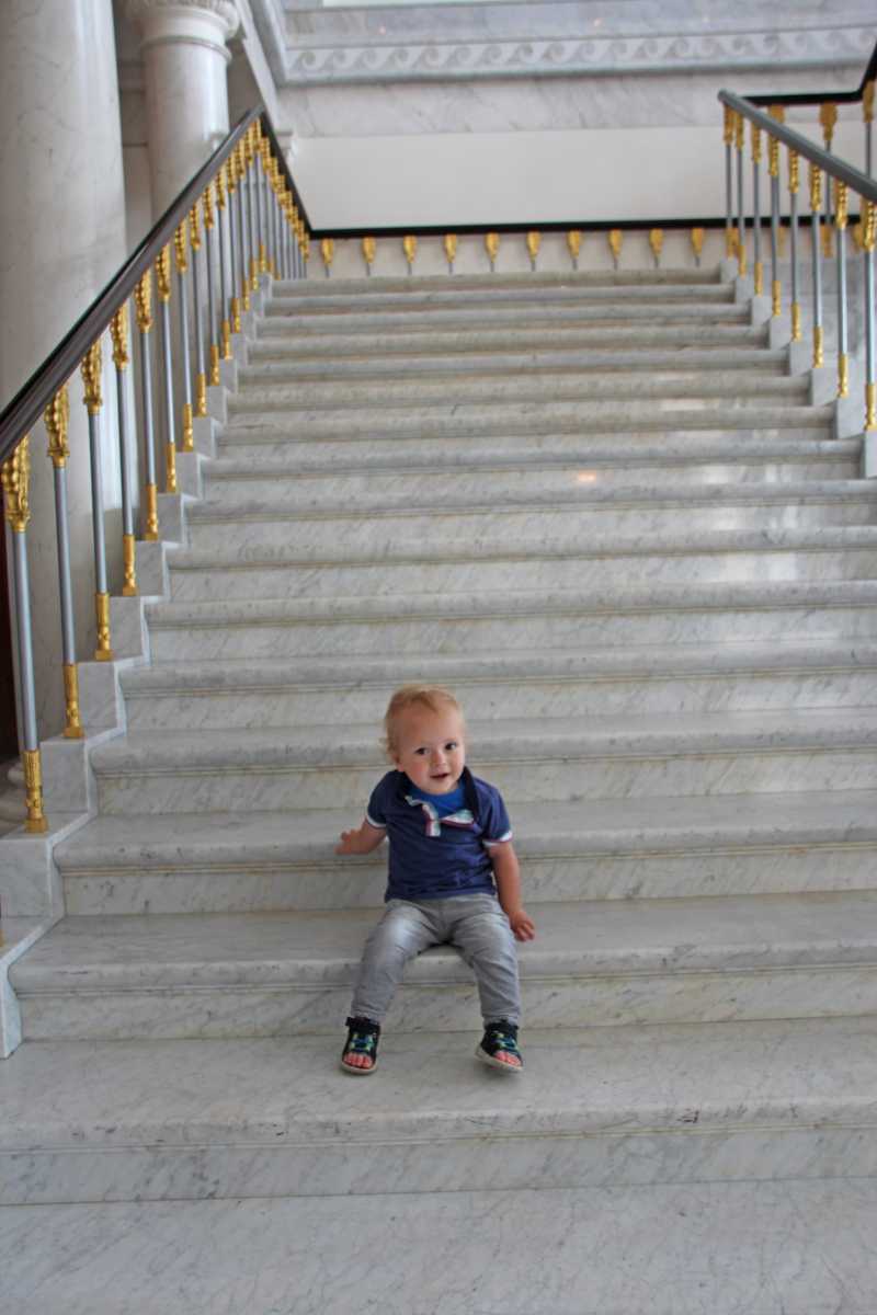 Eenmaal terug op de kade, valt Youp lekker in zijn buggy in slaap en lopen wij een rondje langs de cathedraal, door een park en langs de kade. Fenna koopt nog even een mooi grijs colbertje wat ze vanmorgen al had gezien, en daarom missen wij op 2 minuten na de trein terug en moeten dus bijna een uur wachten. Gelukkig zitten we prima, kletsen we wat af en eten een ijsje. Youp slaapt nog steeds.