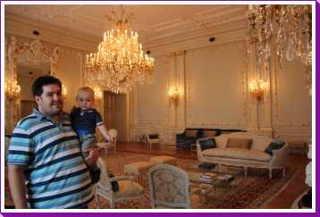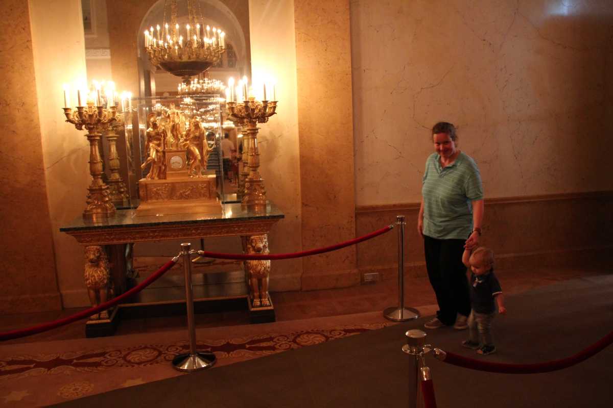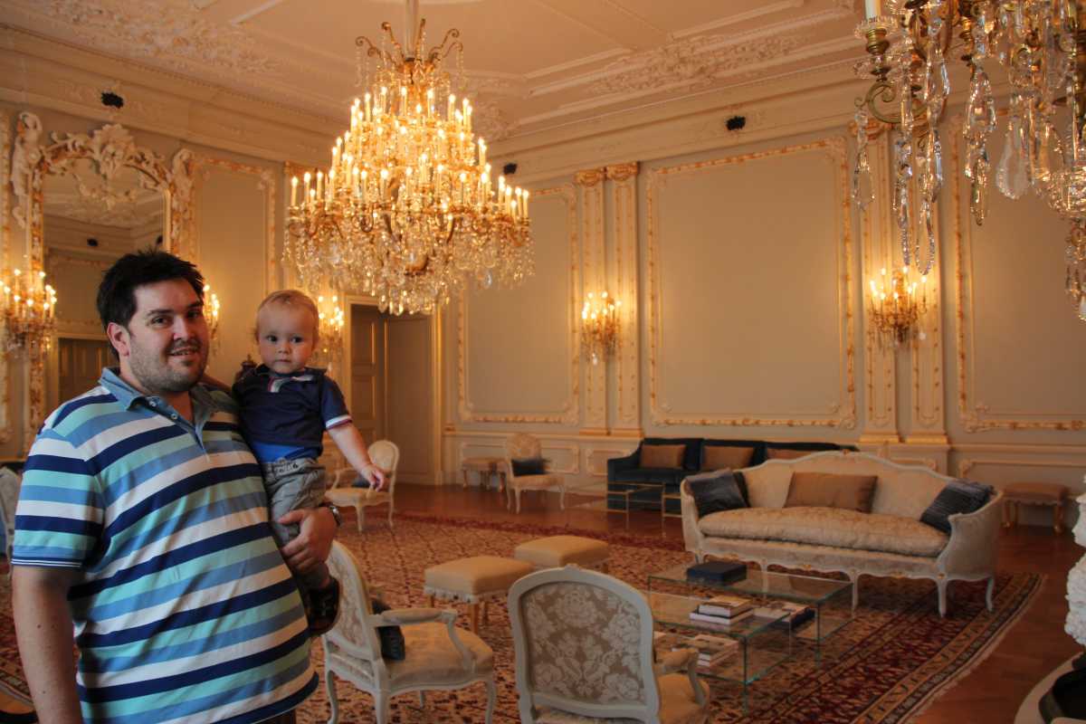 In het oude stadcentrum Ribeira zien we al de mooie hoge vakwerkhuizen en smalle steegjes. We lunchen wat in een gezellig straatje en we lopen verder naar het Palácio Da Bolsa. Hier moeten we even op de tour wachten, maar het was de moeite waard: we eindigen in een zeer rijkelijk en ook best mooie kamer (een beetje als in Alhambra). Youp heeft het inmiddels opgegeven en slaapt in de draagzak bij Erik op de rug.