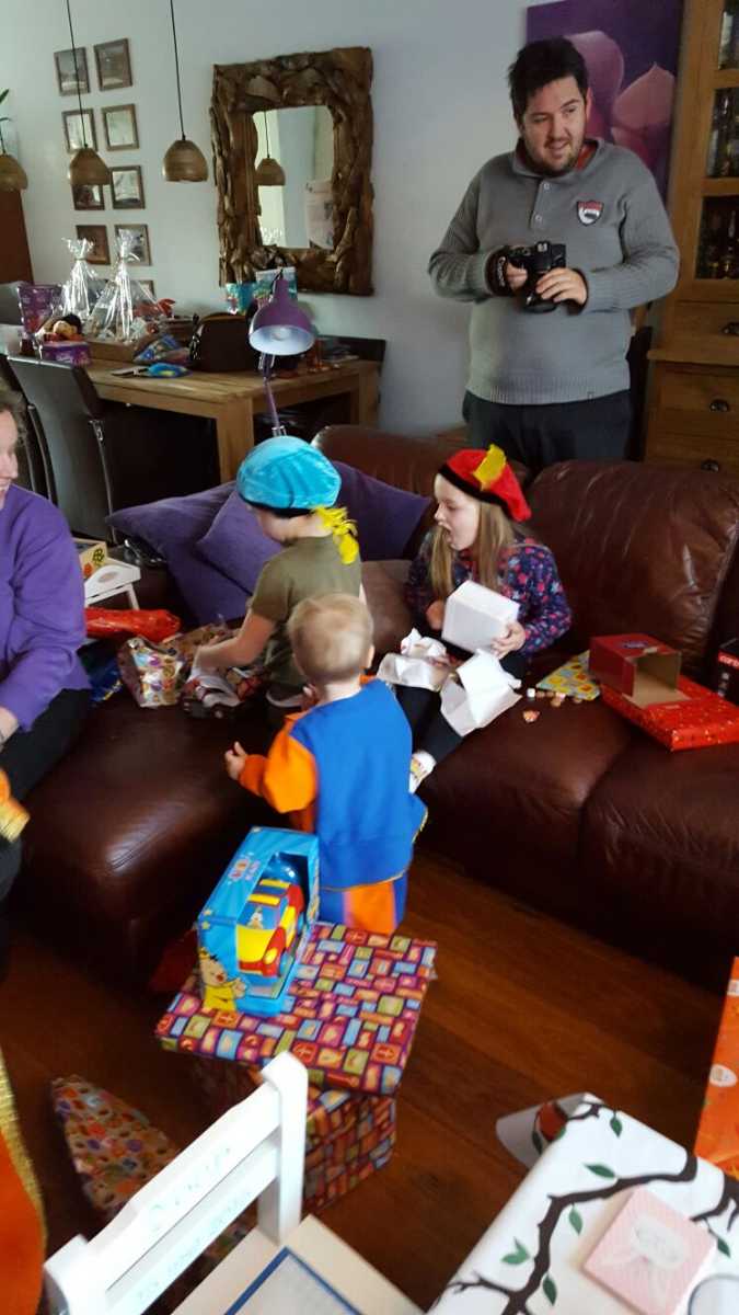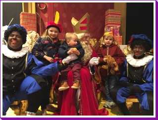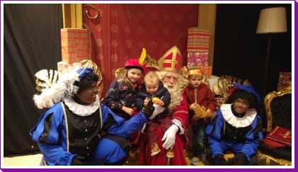 3 december: Vanochtend zijn Shaun & Kimberley met de kinderen Amelie en Heath vanuit Engeland met de boot aangekomen in Hoek van Holland en direct naar ons thuis gereden. Om 9.15 arriveerden ze bij ons thuis. Ze hadden weer allerlei cadeautjes meegenomen uit Engeland. In de ochtend werd er thuis nog even bijgepraat en zijn we uiteindelijk richting Zuidplein gereden omdat hier ook Sinterklaas zou komen dachten we. Helaas bleek hier slechts één enkele Piet aanwezig (die niet eens zwart was) en zijn we dus zonder Sint te zien weer naar huis gereden. Hier hebben we dan als lunch oliebollen gegeten. Daarna Youp zijn bed in en nog een tijdje zitten babbelen. Youp moest echter op tijd zijn bed uit om naar het Sinterklaashuis in Dordrecht te gaan. We haden inmiddels al enige uitleg gegeven aan de kinderen want in Engeland kennen ze Sinterklaas niet. In het Sinterklaashuis waren er allerlei activiteiten en na alle kamers te zijn doorlopen kwamen we dan ook nog bij Sinterklaas zelf. Hier durfde Youp niet echt verder te gaan dan een high five met de Sint, eenmaal op schoot vond het het helemaal niets. De engelse kinderen vonden het maar apart maar niet eng. Aansluitend vanuit het Sinterklaashuis werd en nog een heel klein ijsje gegeten dat de kinderen van de Sint kregen en dat tegenover bij een ijszaak kon worden opgehaald. Uiteindelijk van daaruit door naar Japans restaurant HYH in Barendrecht om te gaan eten. In Engeland kennen ze het concept niet en dus was dat voor hen apart om een keer te doen. Helaas was Shaun niet 100% lekker en heeft die niet al teveel kunnen eten. Maar het smaakte gelukkig wel. Eenmaal daarvan thuis gingen de kinderen het bed in en hebben wij een film zitten kijken.....