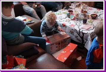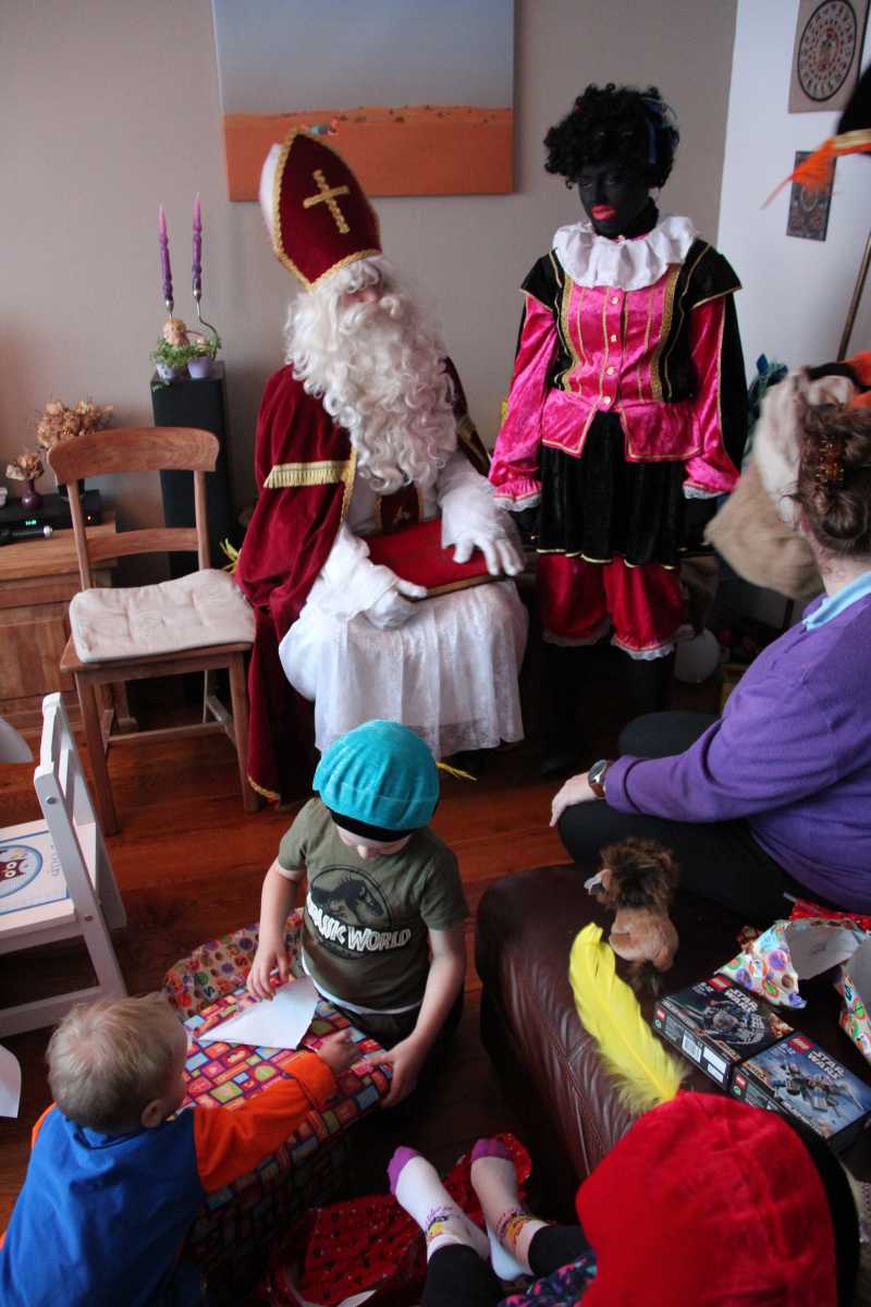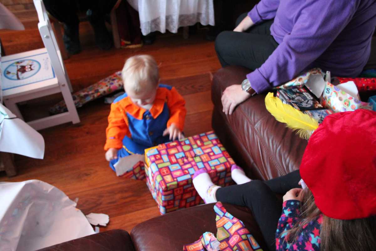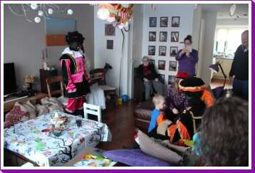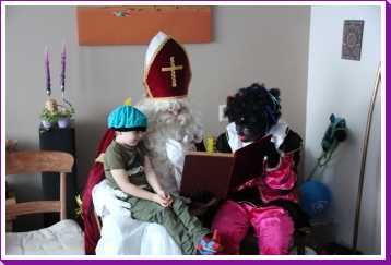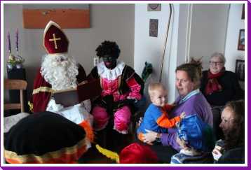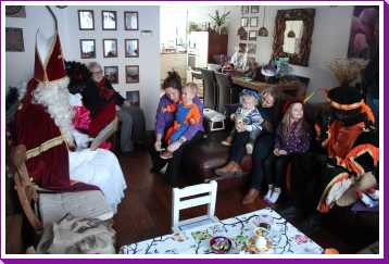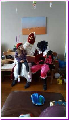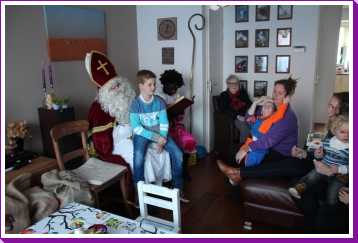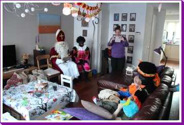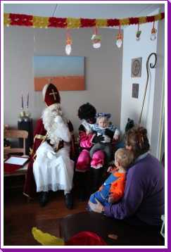 4 december: In de ochtend hebben we lekker thuis gebruncht met afgebakken broodjes. De overgebleven broodjes werden aan de eenden bij ons in de straat gevoerd. Daarna zijn we naar de kinderboerderij gereden waar bleek dat die (en alle andere kinderboerderijen in de regio) preventief gesloten was om de vogelgriep buiten de deur te houden. Helaas dus zonder dieren te hebben gezien weer naar huis. Youp dus maar gelijk zijn bed in omdat Sinterklaas al vroeg bij ons langs zou komen. Vervolgens aan het begin van de middag is Erik met onze vrienden maar even een stukje door de wijk gaan wandelen waarbij de kinderen om beurten in Youp zijn electrische kinderauto konden rijden. Nou dat vonden ze geweldig. Eenmaal thuis duurde het niet heel lang voordat de ouders van Jantine er ook waren en ook vrienden bij ons thuis aan kwamen. Een minuut of twintig later meldde de Sint en twee pieten zich bij ons huisje. De kinderen vonden het allemaal erg spannend en op schoot zitten vonden de meesten toch wel eng. Toen de cadeautjes allemaal waren uitgepakt en de Sint weg ging, vonden de pieten het leuk om nog eens even flink met strooigoed door de kamer te smijten. Daarna liepen ze de gang in naar de voordeur, maar eenmaal in de gang bleek daar dat Piet het ook leuk vond om letterlijk elke schoen te vullen met strooigoed en ook hier de gang verder nog even te bezaaien met strooigoed. Daarna maar even lekker een paar pizza's afgehaald om thuis te eten waarna het voor onze vrienden weer tijd werd om terug naar Hoek van Holland te rijden om hier de boot te gaan nemen. Helaas moesten ze nog een keer terug naar ons thuis omdat ze een kledingstuk van Heath waren vergeten. Later op de avond vonden we helaas ook nog twee tablets......