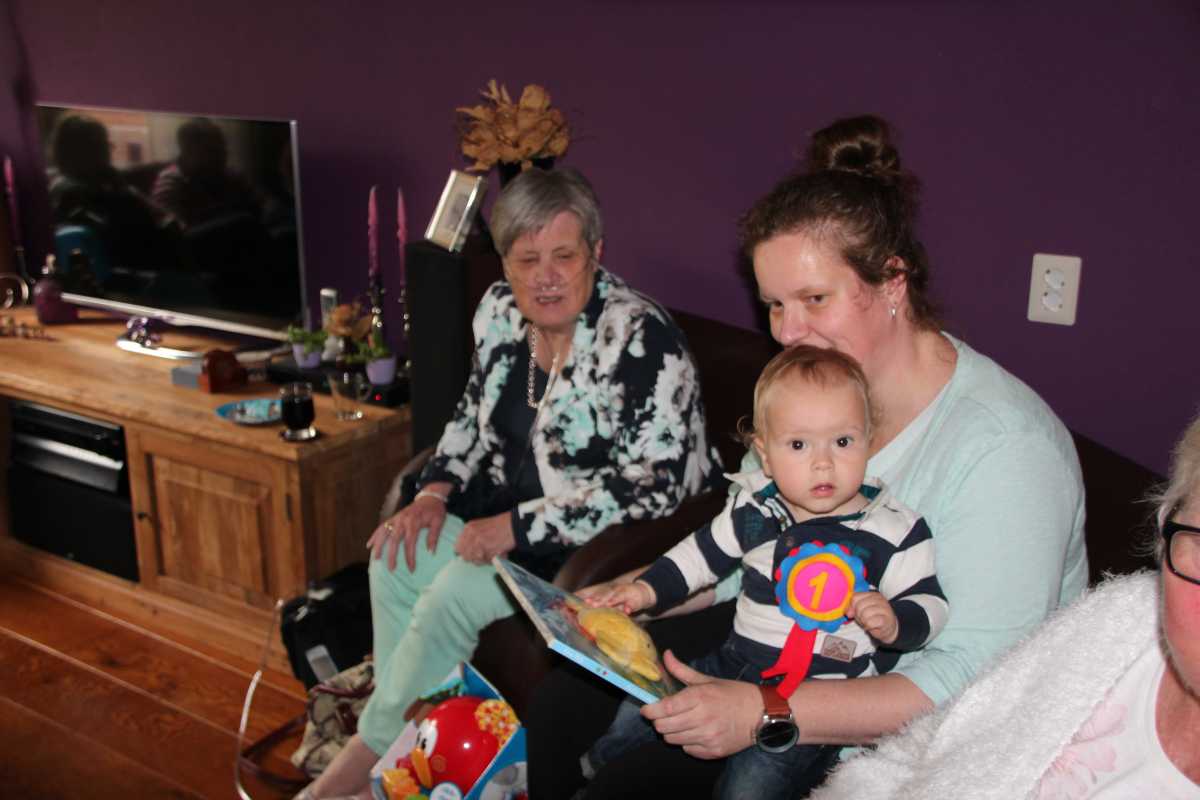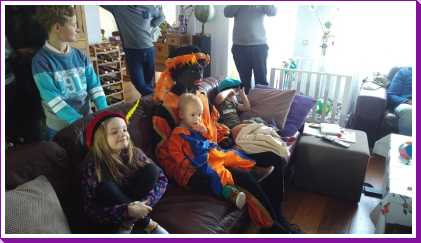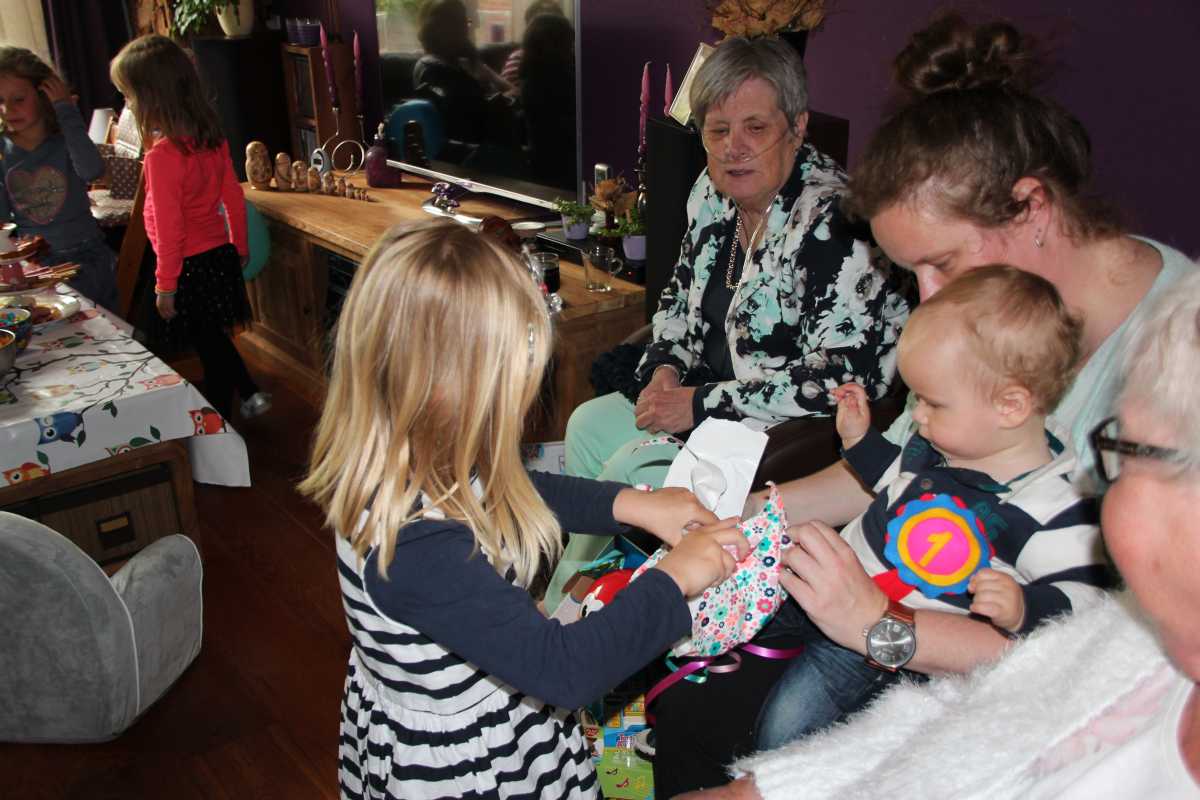 16 oktober: Vanmiddag hebben we thuis de verjaardagsviering gehouden van Tine en Jantine. Het was weer aardig druk thuis en Tine was blij om zowel Ellie als Cobie weer eens samen te zien. De jeugd was voornamelijk aan het spelen.