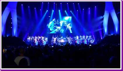 Het was een spectaculaire avond met mooie effecten van licht, vuur, confetti, rook, enz. Alles werd uit de kast gehaald. Hieronder staan een serie foto's en filmpjes. Met name de laatste drie filmpjes geven wel weer hoe spectaculair het was.