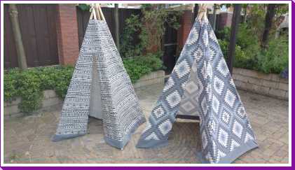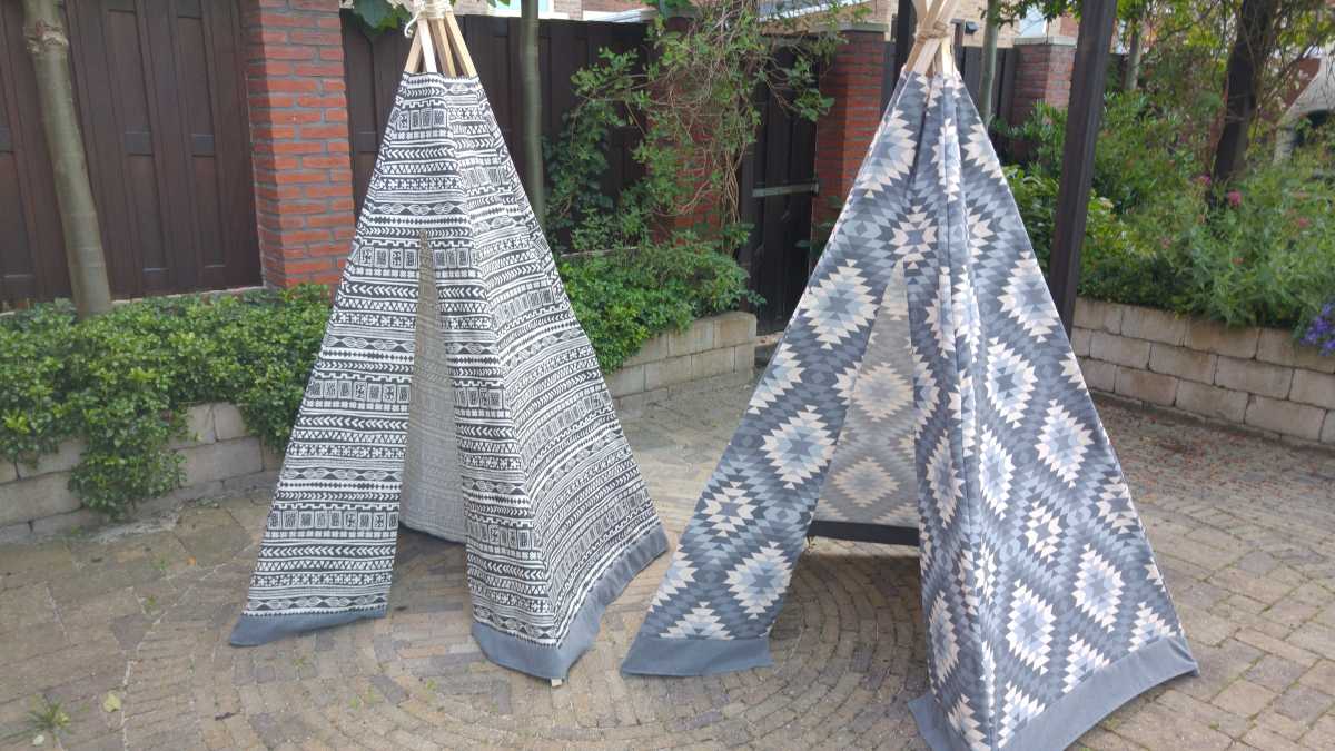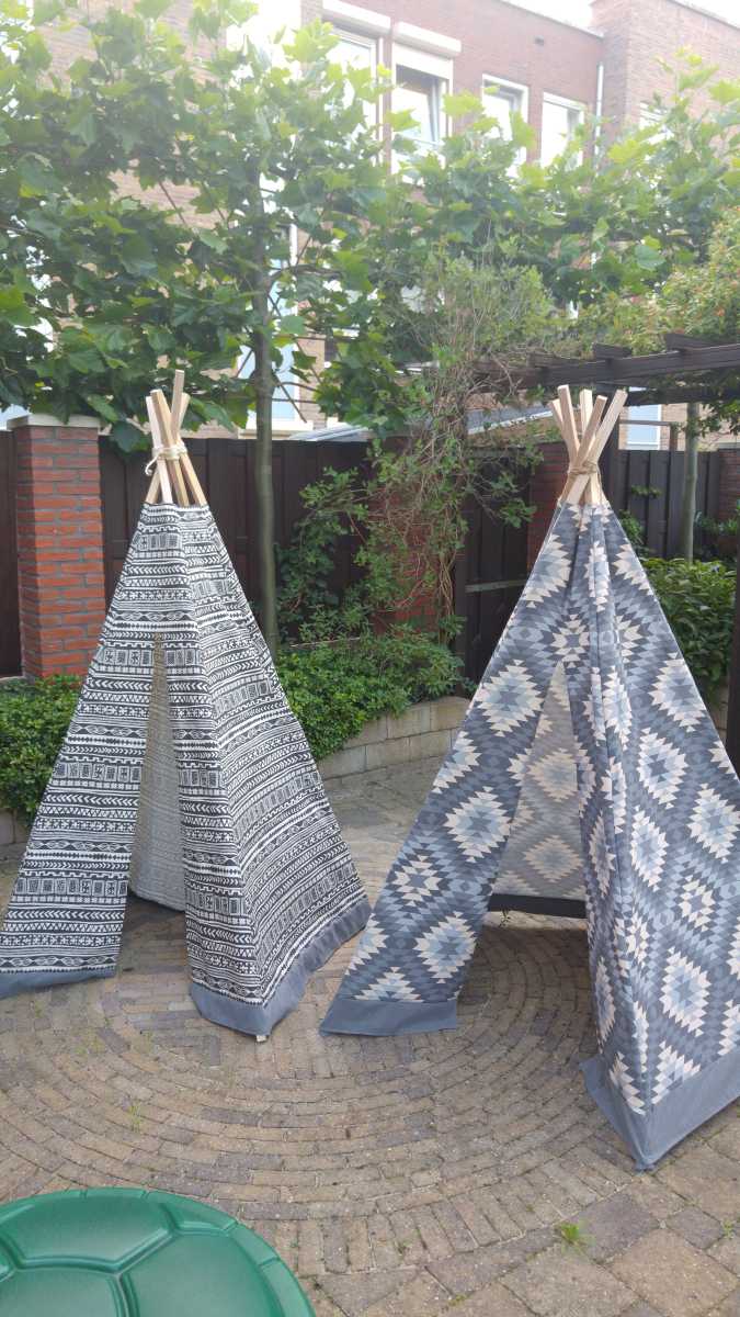 19 juni: Jantine heeft met de lockmachine die ze voor moederdag kreeg weer een nieuw projectje opgestart, namelijk het maken van speel tipi's. Onderstaand de twee eerste exemplaren, één voor Youp en één voor zijn vriendje Liam. Het zijn zeker niet de laatste want er zijn al bestellingen binnen gekomen. Dat betekend dus nog flink wat naaiwerk ;-)