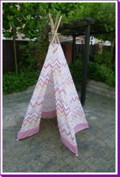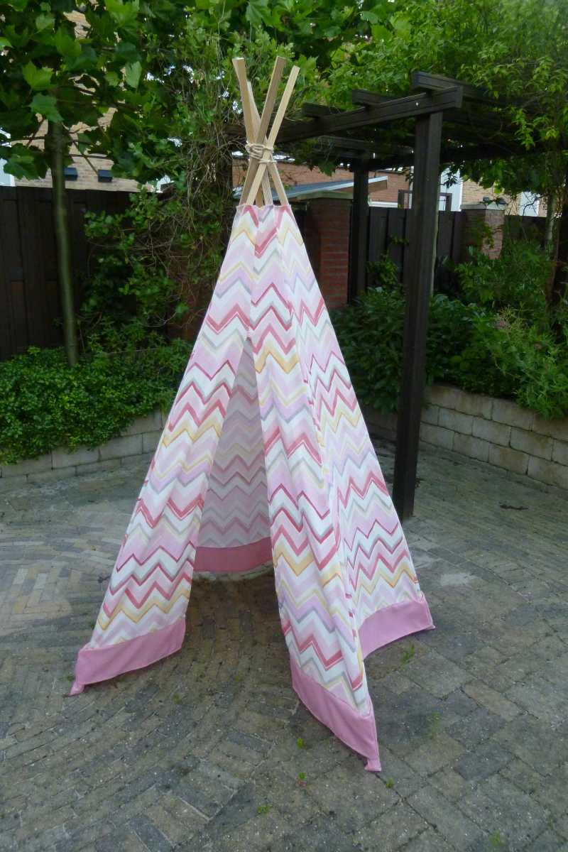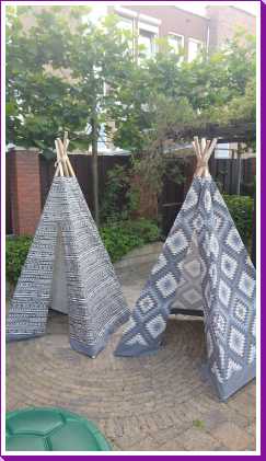 11 juli: Jantine heeft weer een tipi gemaakt, ditmaal voor dochter Eline van een nicht. Het is een echte meisjes tipi geworden....