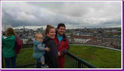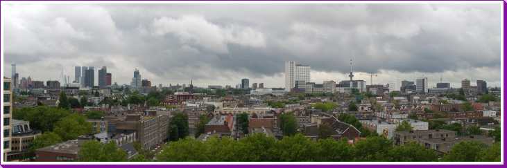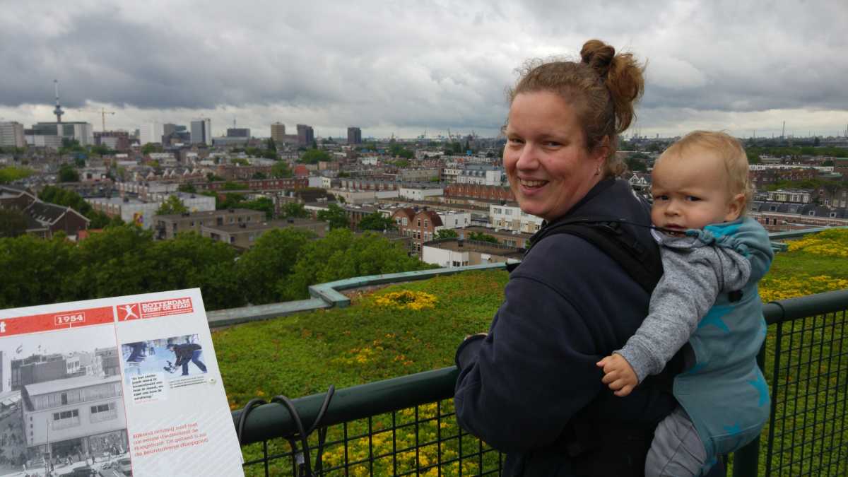 13 augustus: Halverwege de middag zijn we naar het centrum van Rotterdam gereden om hier op kraamvisite te gaan bij Nicolette Knappe. Dat was erg aan de late kant maar had zo zijn redenen. Zij woont in de Calypso in Rotterdam van waaruit je best een leuk uitzicht hebt. Jantine is toch ook maar even met de koters op de foto gegaan.