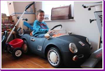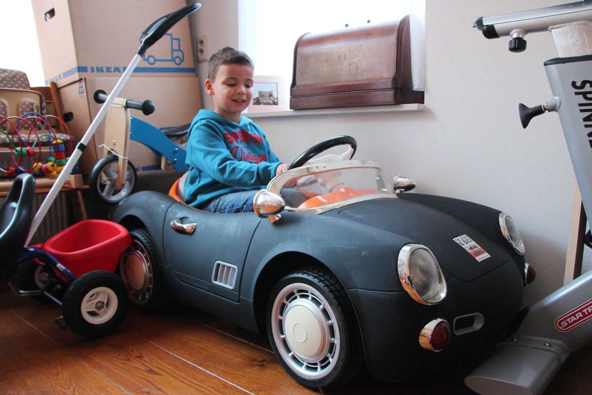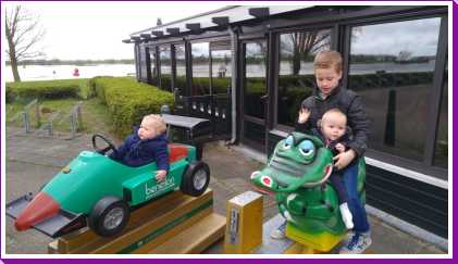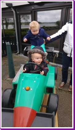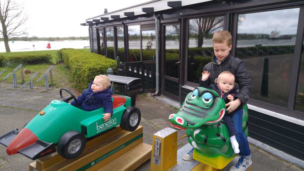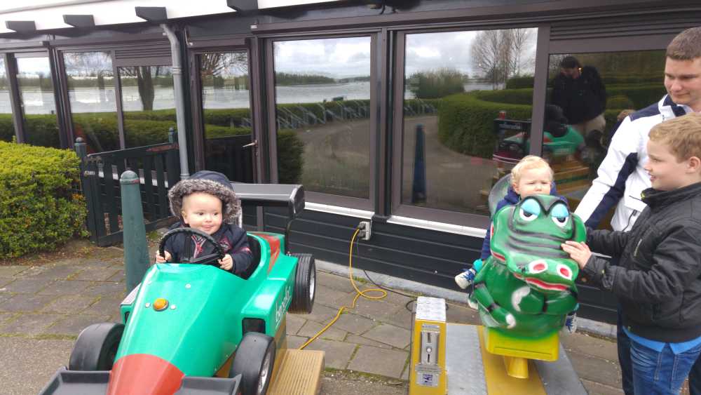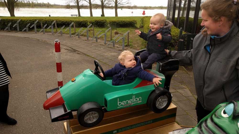 Aansluitend zijn we met Patrick, Bieneke, Jens en Lars geweest eten bij pannenkoekenrestaurant de Oude Maas. Youp heeft een halve pannenkoek op, maar wel de volwassenenmaat. Daarna mocht hij ook nog even in de raceauto buiten rijden.