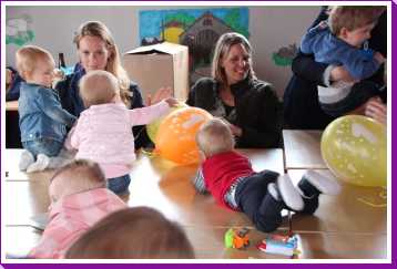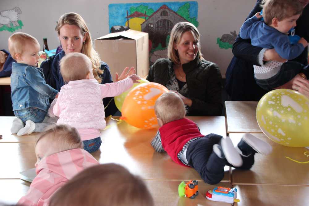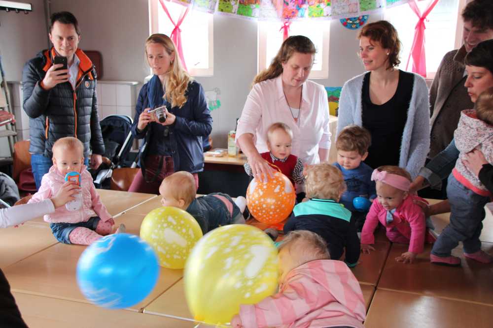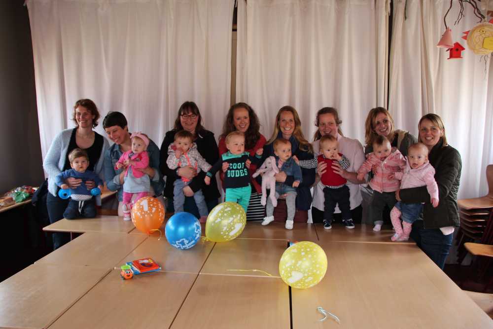 16 april: Vanmiddag hadden wij in de Kleine Duiker in Barendrecht een meeting met een groot deel van de babies van de pufclub en ouders. Alle kleintjes kropen over de tafels en hadden en gezellige meeting.