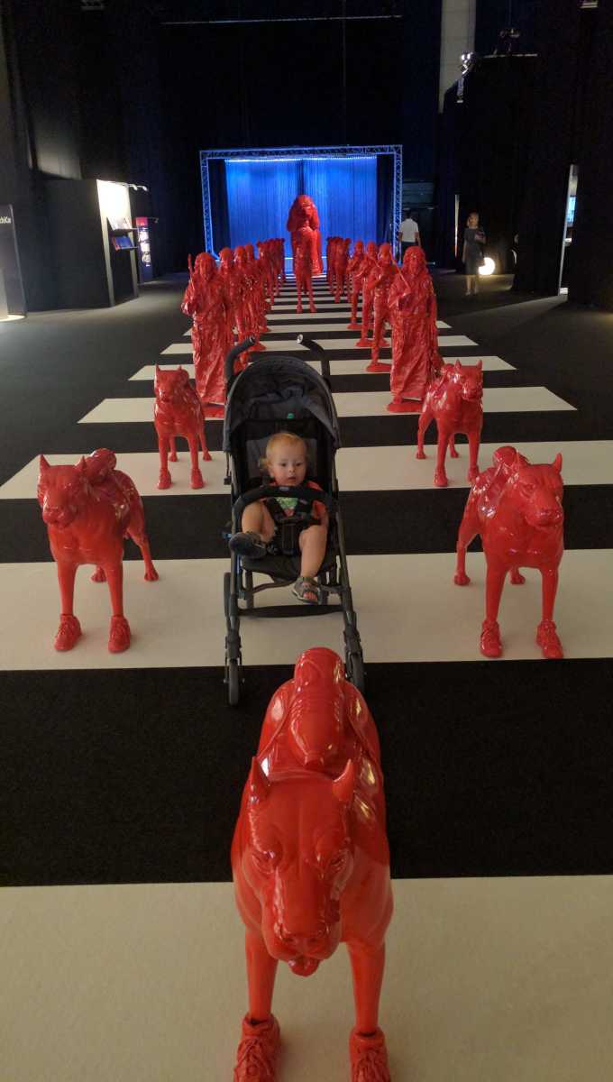 14 september: Erik is vandaag samen met Youp naar de beurs Architect@Work geweest in de Ahoy. Youp vond het op zich wel aardig, maar die grote rode honden waren toch wel het leukst....