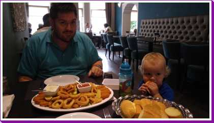 1 september: We hadden vandaag 8.45 uur bij het ontbijt afgesproken, omdat normaal Youp rond half 9 wakker wordt. Alleen was hier nog een uur tijdsverschil en de vermoeiende dag van gister, dus we moesten Youp echt wakker maken.