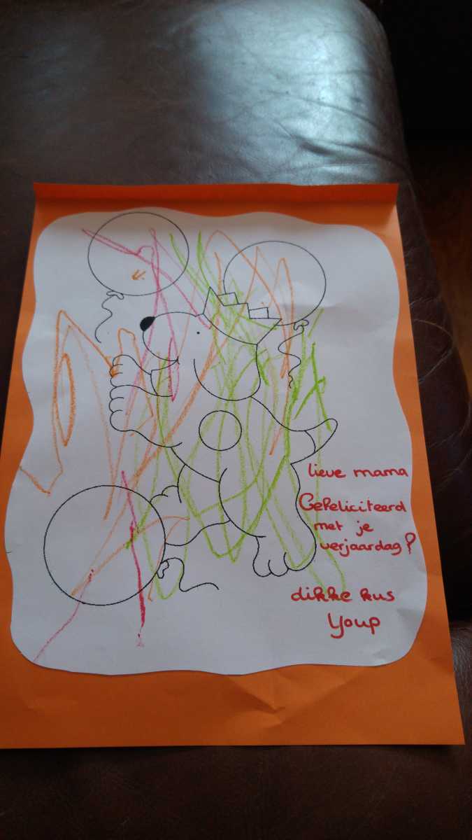 13 oktober: Jantine is vandaag jarig en dus zijn we 's-avonds met z'n drieën gaan uit eten. Youp had een mooie tekening gemaakt bij gastouder Yvonne dus waar was ze wel blij mee.