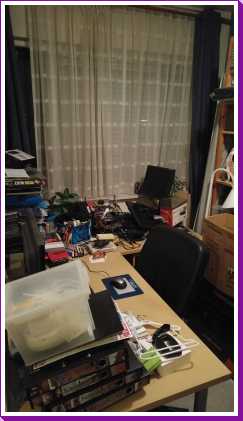 5 december: Vanavond hebben we de PC van de kamer boven naar zolder verhuist en ook de inhoud van de bureau's. De kamer boven is nu dus op twee lege bureau's na leeg. Die bureau's moeten echter geschilderd worden en blijven dus nog even daar.