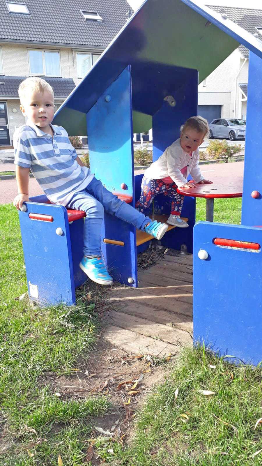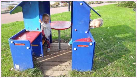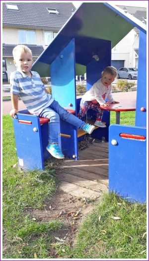 12 oktober: Buurvrouw Sylvia mocht even op ons passen en toen zijn we naar de speeltuin geweest, leuk hoor.......