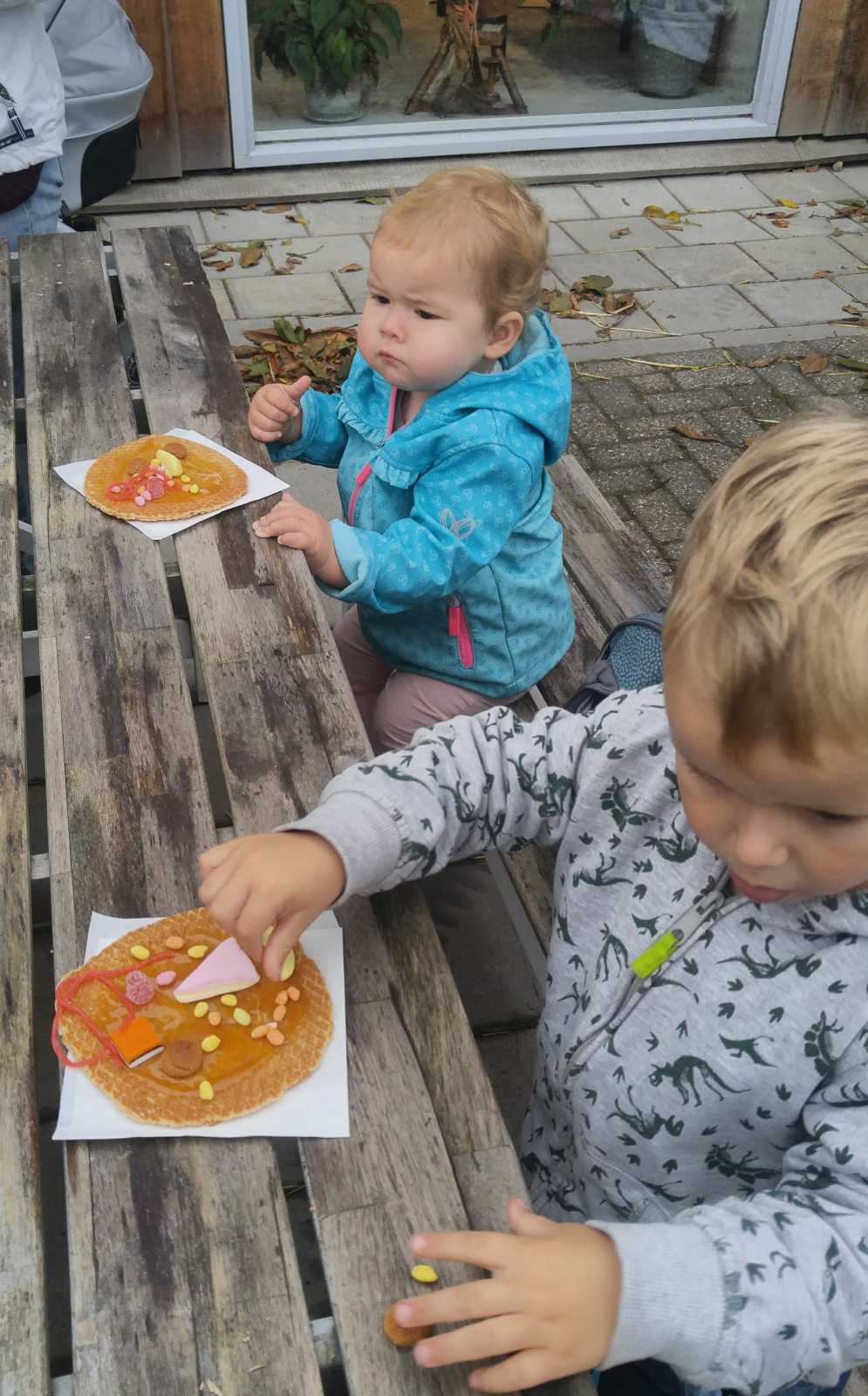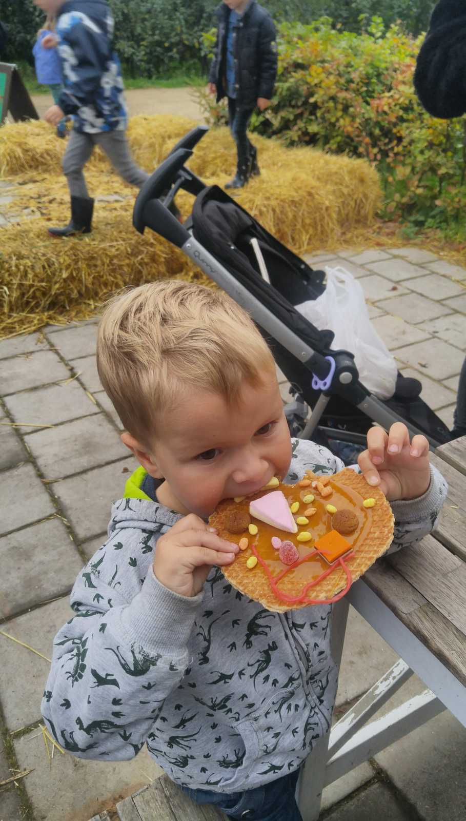 26 oktober: Vandaag zijn we met mama naar de Buytenhof in Rhoon geweest. Hier mochten we zelf stroopwafels versieren en daarna ook opeten. Daarna zijn we ook nog even bij opa en oma geweest en die hadden heel veel luchtzakjes om kapot te trappen. Toen we thuis waren en Yfke op bed lag, heb ik met mama hapjes gemaakt die mama vanavond mee gaat nemen naar de tennis. We hebben vanalles gemaakt samen. Ik ben een hele goede hulp hoor.......