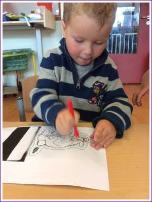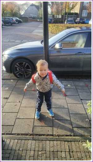 31 oktober: Vandaag mocht ik voor het eerst naar school om een dagje mee proef te draaien bij Victor de Verkenner. Aanvankelijk leek me dat wel leuk, maar mij was niet verteld dat papa en mama dan weg zouden gaan. Tja, dan eerst maar een uurtje huilen totdat ik zo rood ben als een biet. Maar helaas, papa en mama kwamen niet terug, dus dan toch maar eens kijken wat hier te doen is. Ik heb vanalles kunnen doen zoals spelen met de auto's, prikken langs het blauwe lijntje op het prikblok, liedjes zingen en nog veel meer. Aan het begin van de middag kwam papa mij samen met Yfke weer ophalen. Ik vond het toch wel leuk geloof ik. Eens kijken hoe het volgende week gaat.......