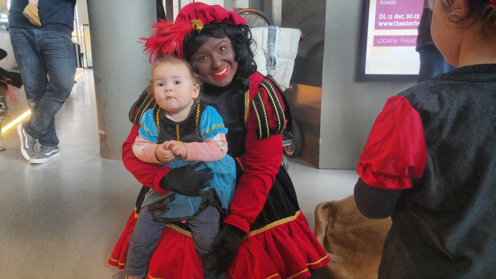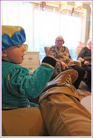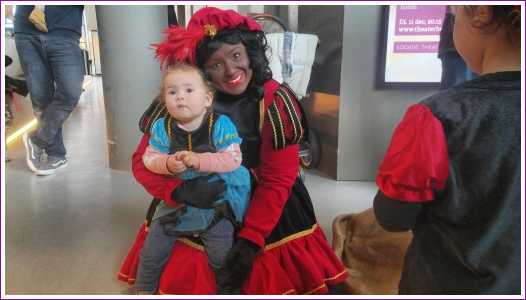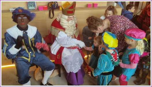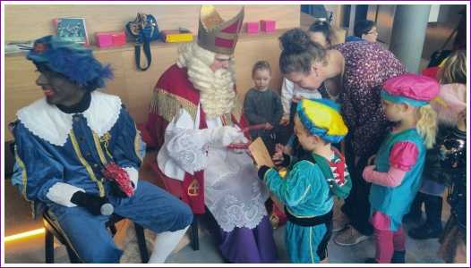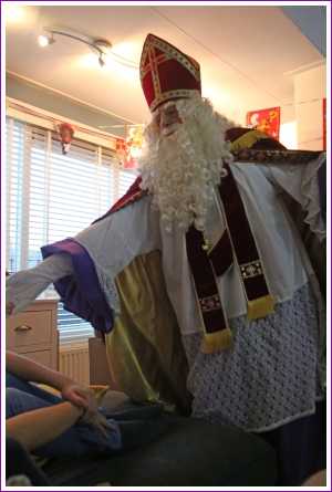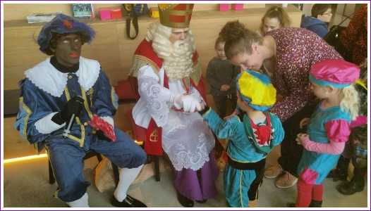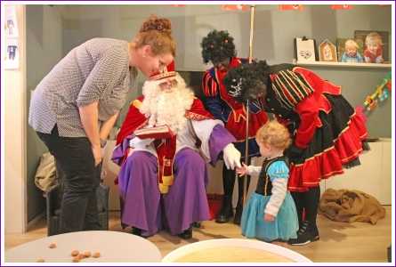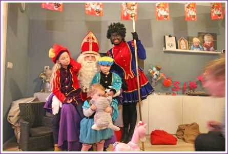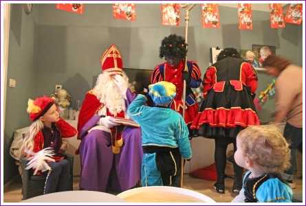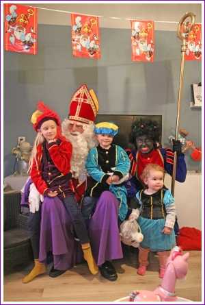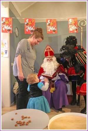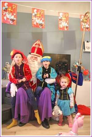 1 december: Vanochtend zijn we begonnen met het Sinterklaaszwemmen in het zwembad. Daar waren ook veel dansende Pieten. Daarna zijn we 's-middags naar theater 't Kruispunt geweest. Hier was ik met mama en Yfke gisteren al een schoentje komen zetten, en vandaag zouden de Sint en een aantal zwarte Pieten komen. Ik mocht zelfs een vraag stellen aan Sinterklaas. Toen die meneer het eerst vroeg stelde ik netjes de vraag hoe groot Sinterklaas zou zijn zonder mijter. Maar toen Sinterklaas er echt was was ik toch wel een beetje zenuwachtig en vroeg ik 'hoe groot is u'. En ik weet wel dat die zin niet echt klopt, maar je moet je soms ook wat dommer voordoen, dat helpt je soms.........
