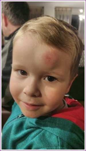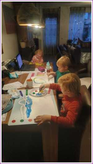Eenmaal weer thuis heb ik even buiten op straat gespeeld. Maar ik ben toen uitgegleden bij de ondergrondse vuilnisbak en hard op mijn hoofd gevallen. Daarna mocht ik binnen verven samen met Evan.......