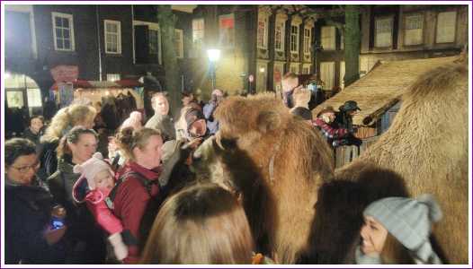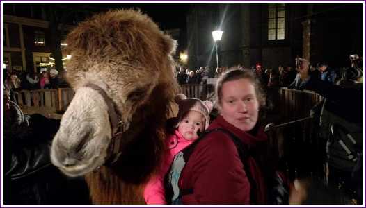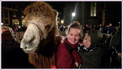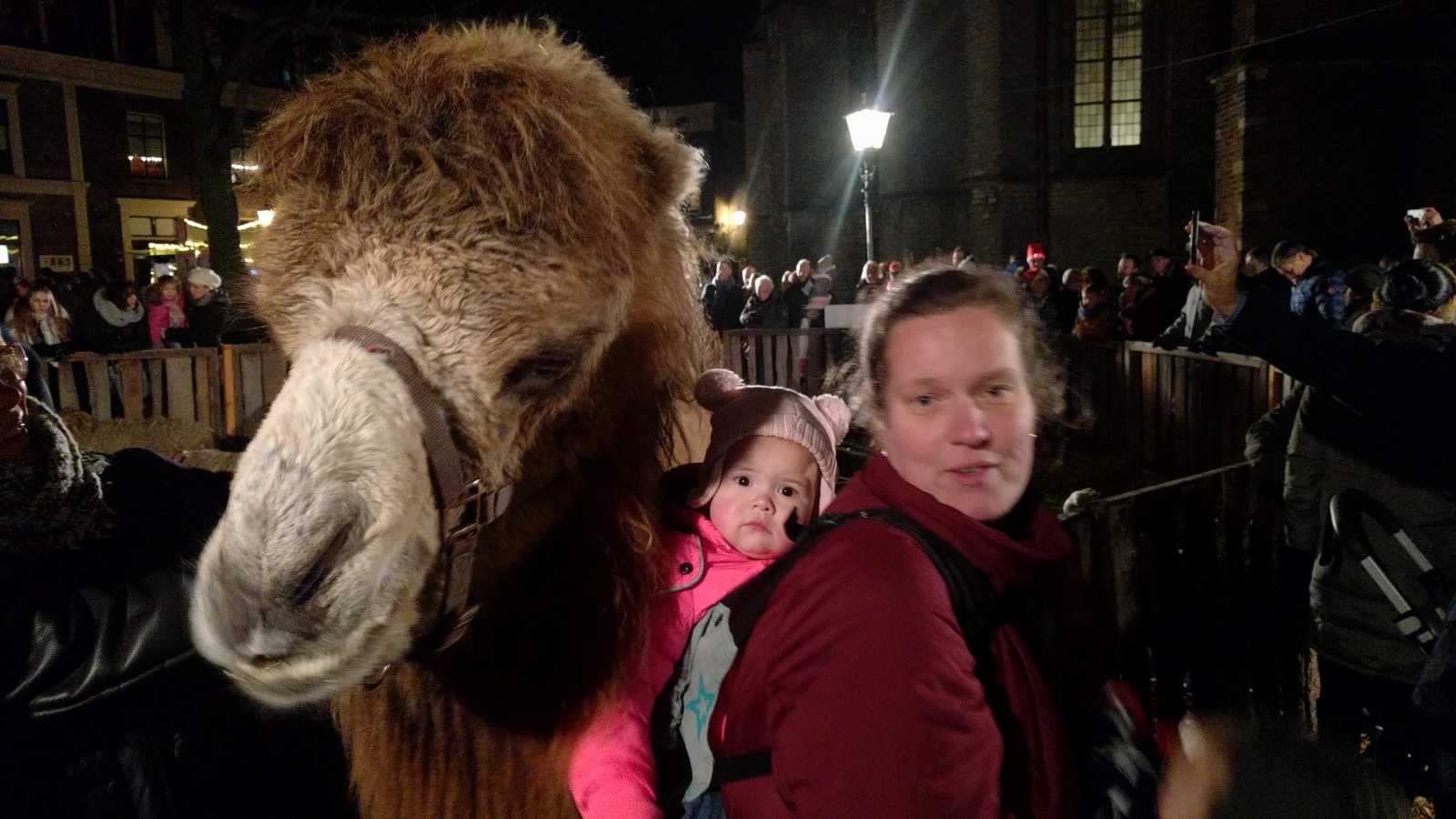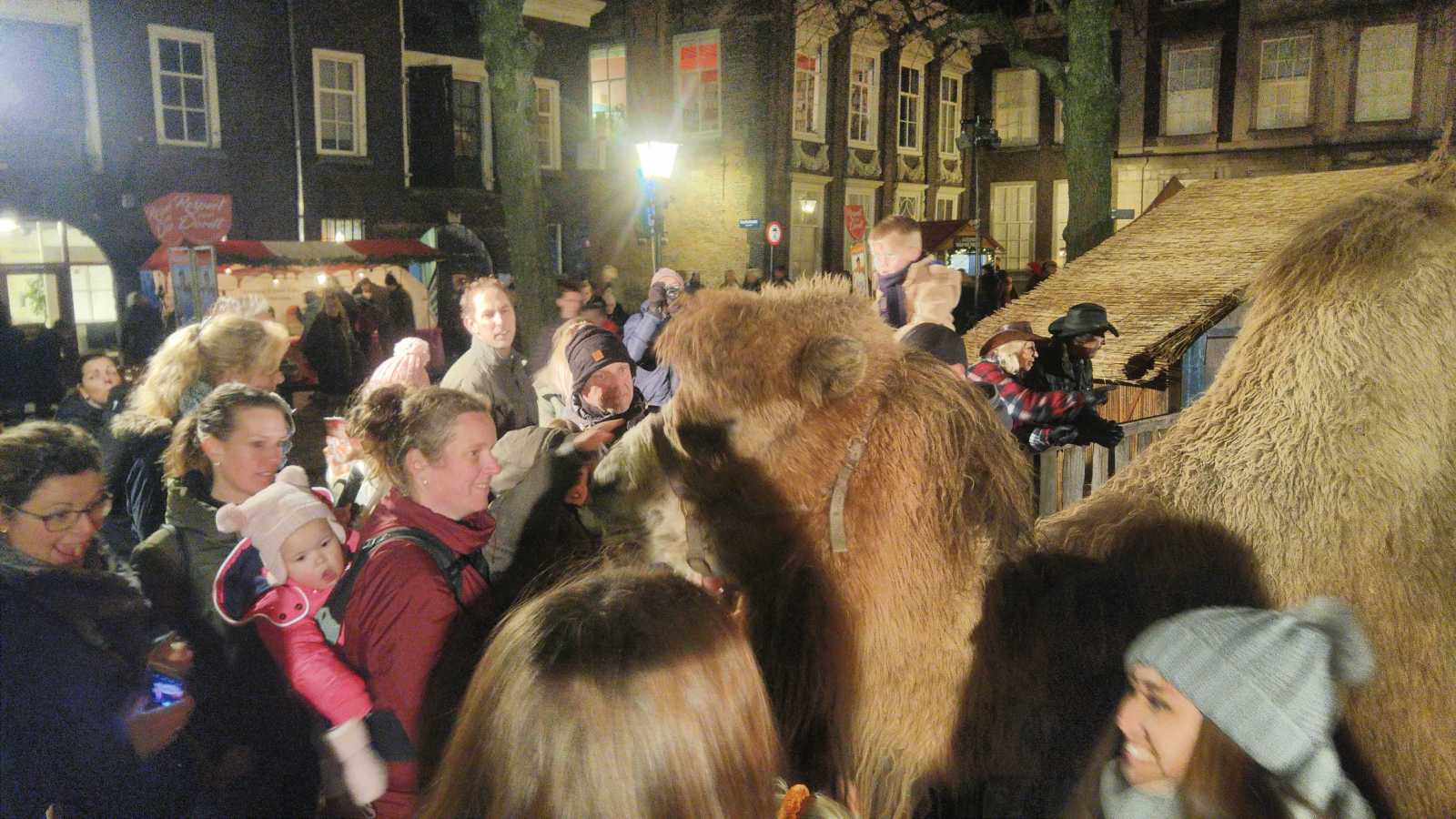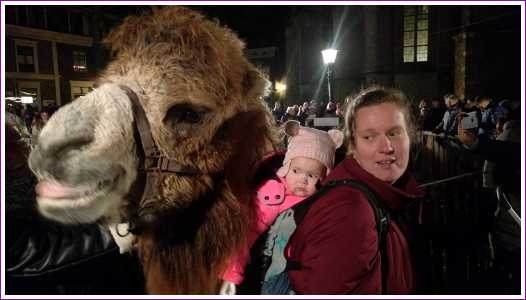 14 december: Vanavond zijn we naar de kerstmarkt in Dordrecht geweest. Hier waren heel veel lampjes en kraampjes met leuke dingen. Ik en Yfke hebben een kerstmuts gekregen. Ook hebben we een kameel gezien en hebben we een poging gedaan om er mee op de foto te gaan, maar dat wilde iedereen wel..........