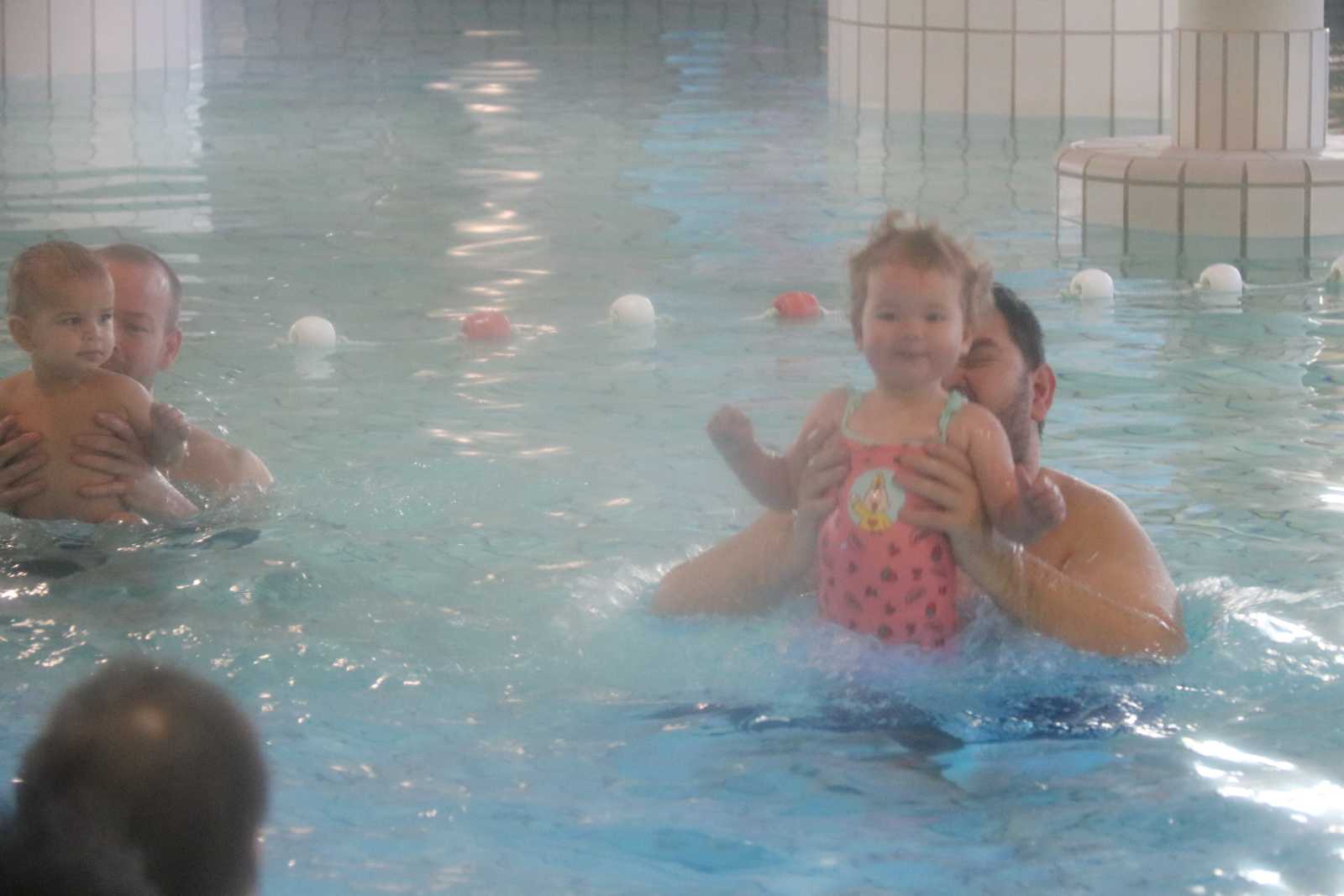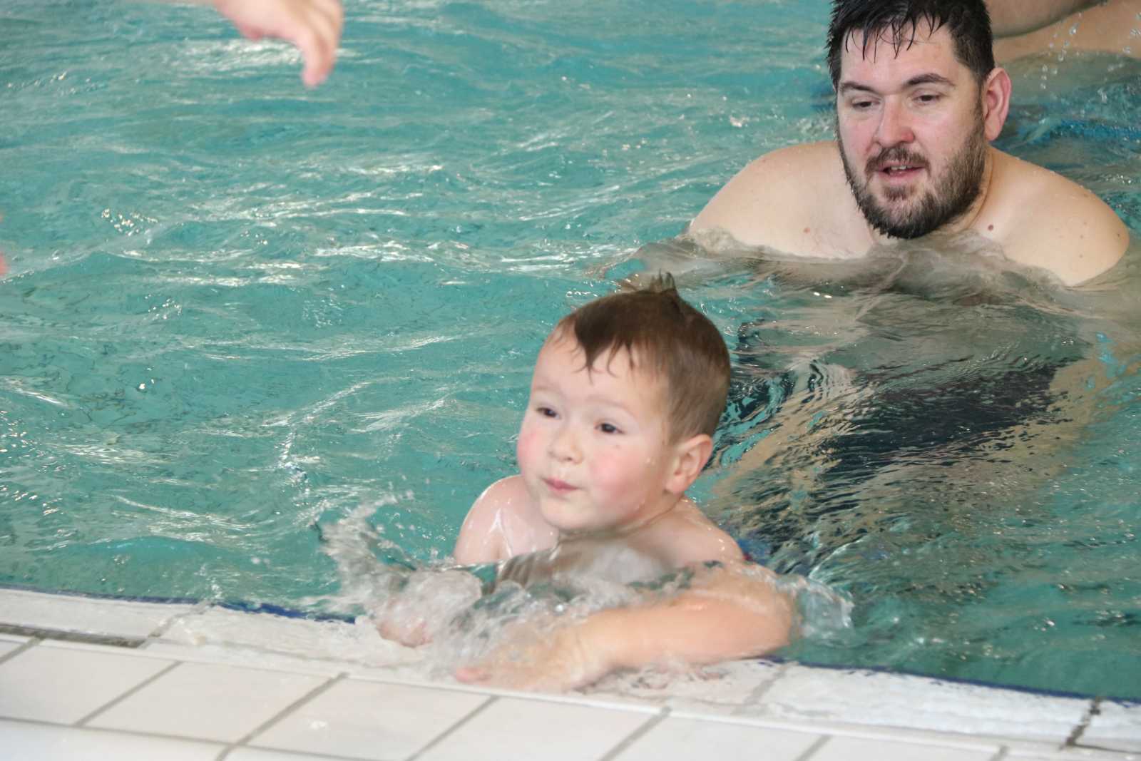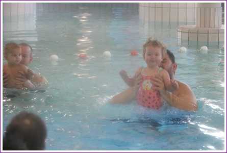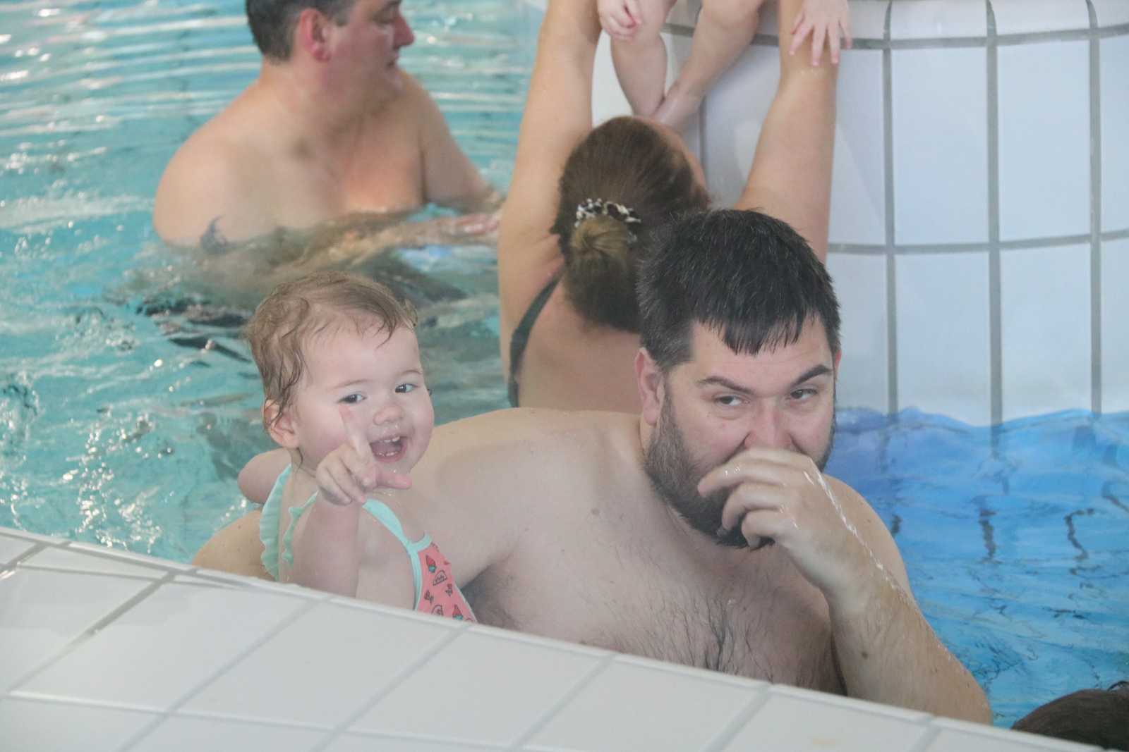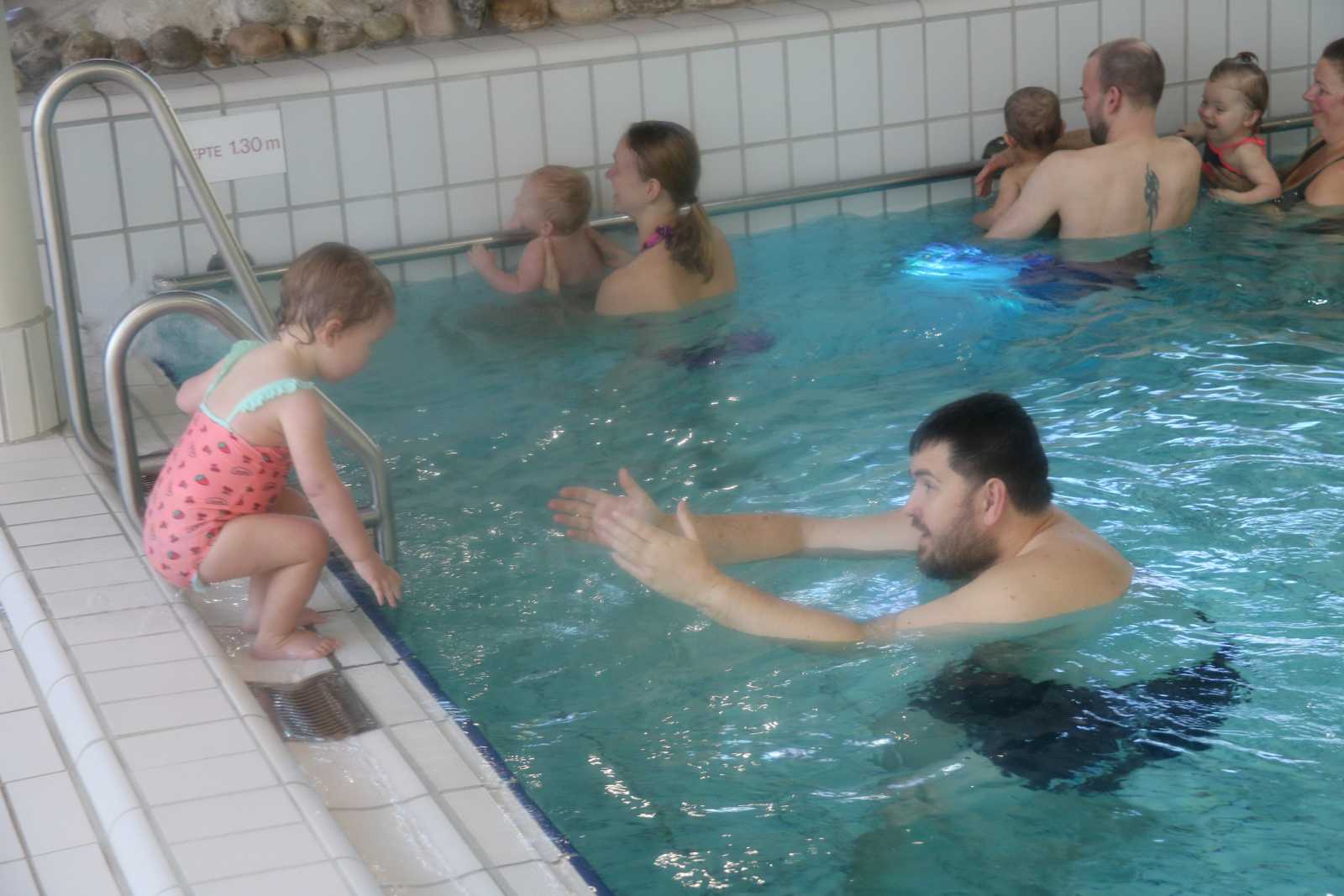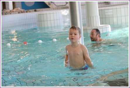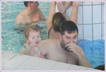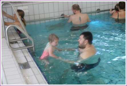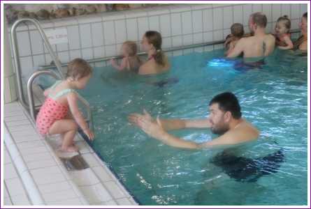 23 februari: Vandaag was er weer de zwemles, en weer mocht papa juist mee het water in..........
