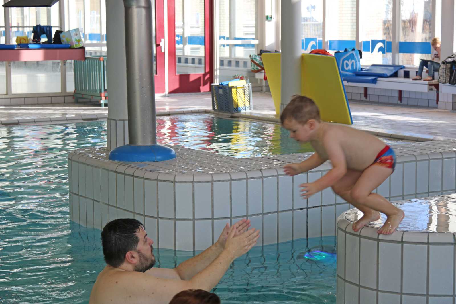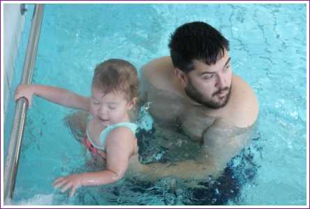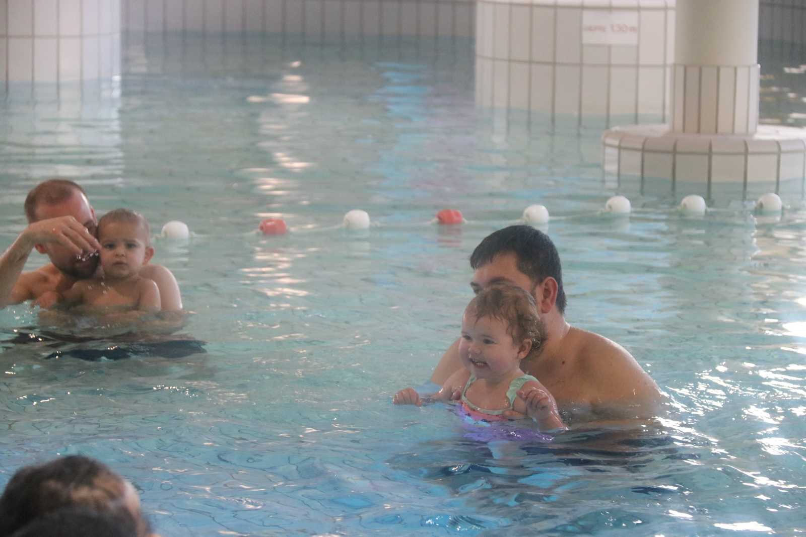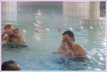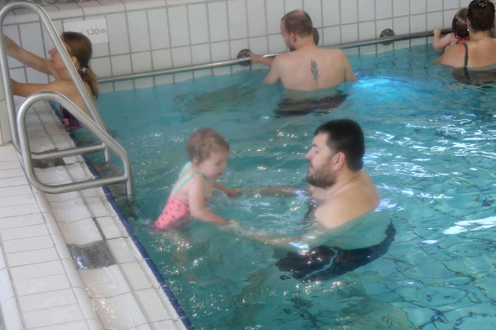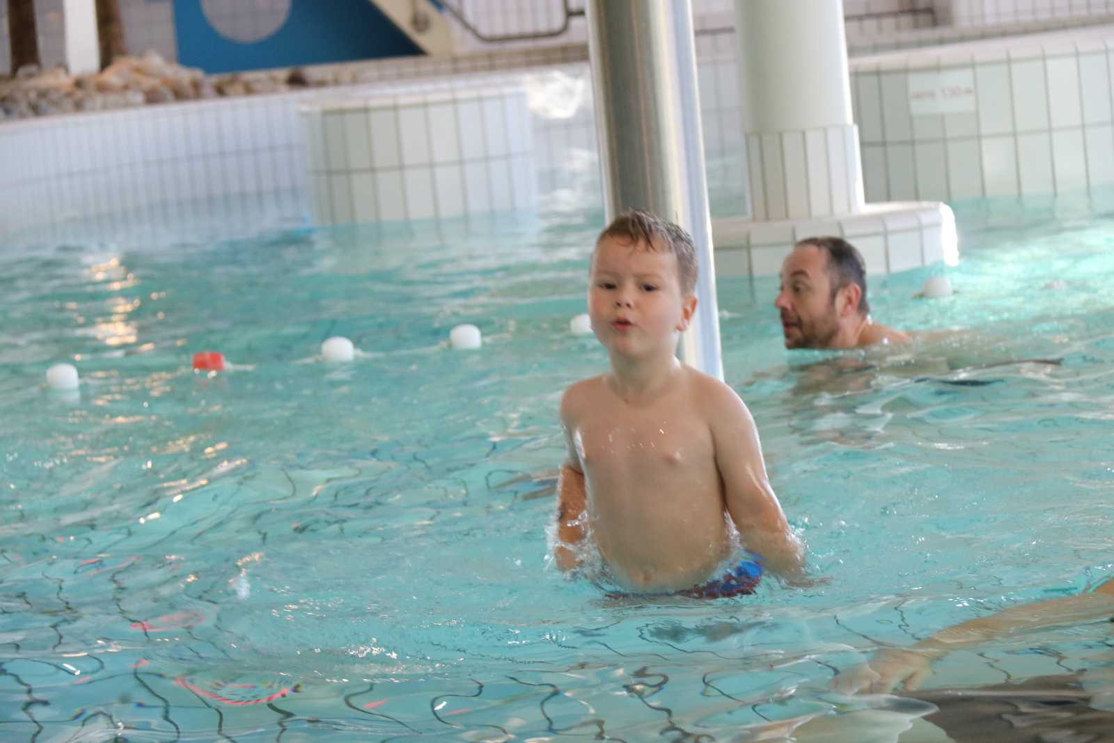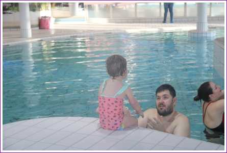 23 februari: Vandaag was er weer de zwemles, en weer mocht papa juist mee het water in..........