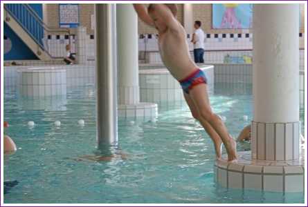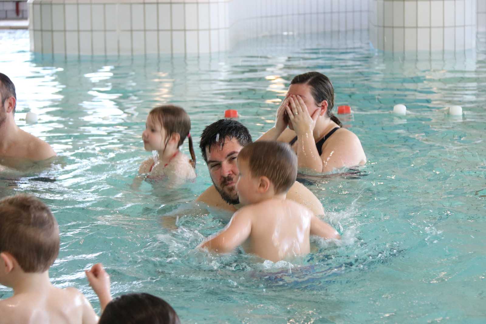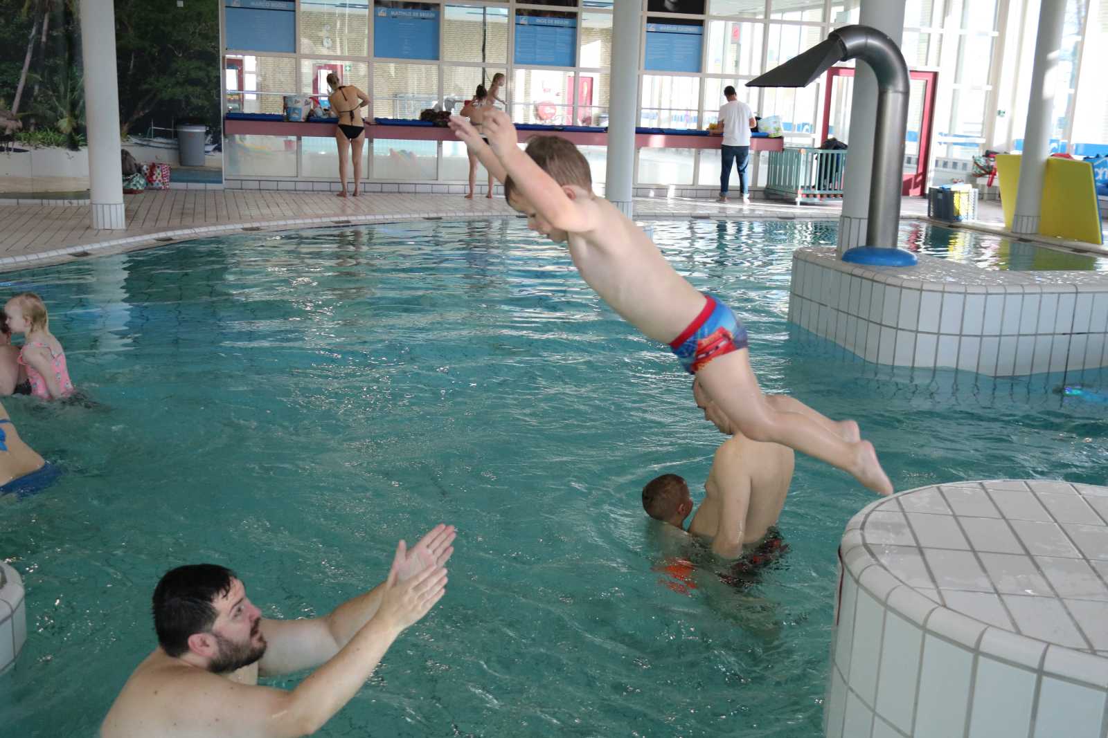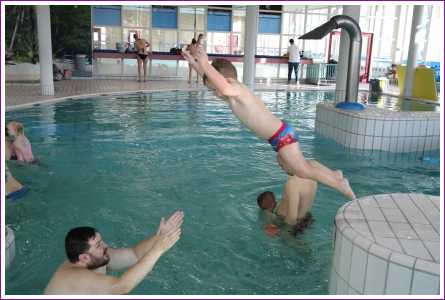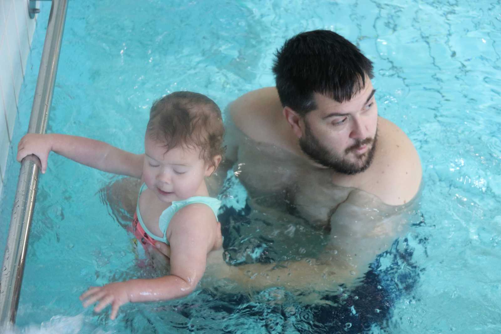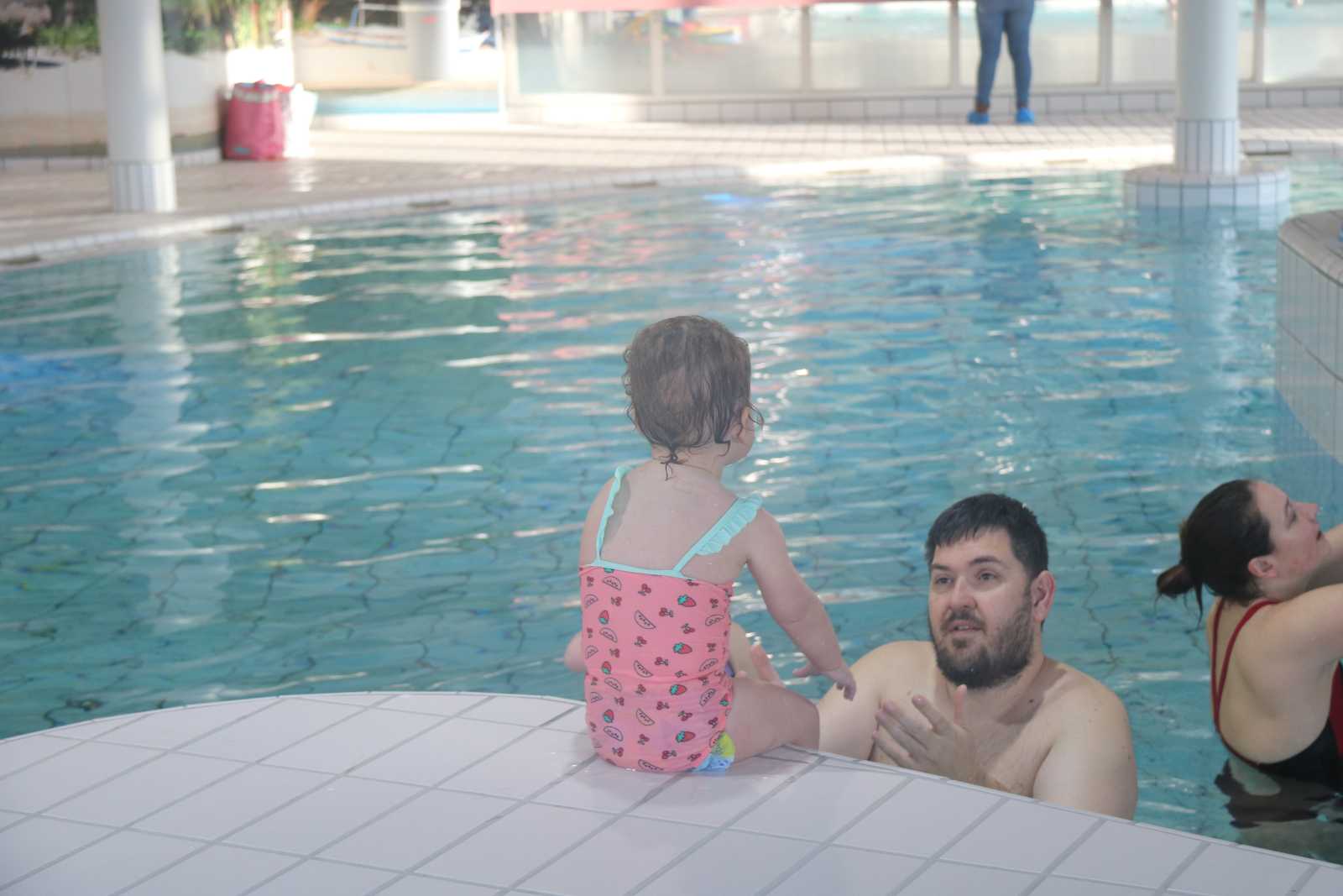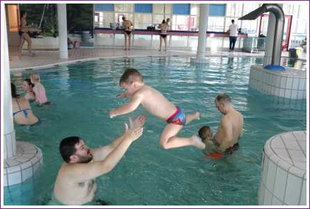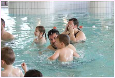 23 februari: Vandaag was er weer de zwemles, en weer mocht papa juist mee het water in..........
