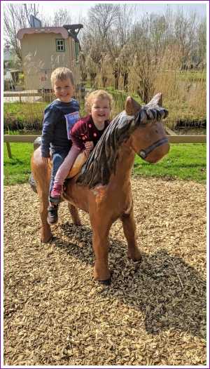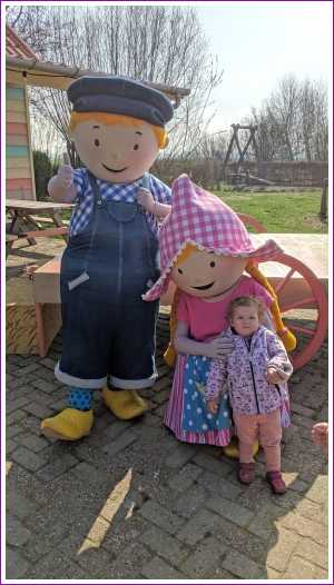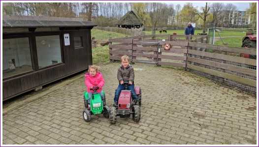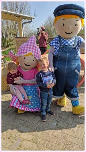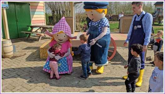 29 maart: Omdat Yfke komende week jarig is en het vandaag goed weer was, zijn we met z'n allen naar avonturenboerderij Molenwaard geweest. Dit is het park waar Fien & Teun vandaan komen, die hebben we dus de hele dag gezien. Maar je kon er ook leuk op tractoren rond rijden, paardje rijden, in de speeltuinen spelen, geiten voeren, enz. Erg leuk allemaal, dat vond Yfke ook......