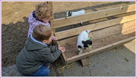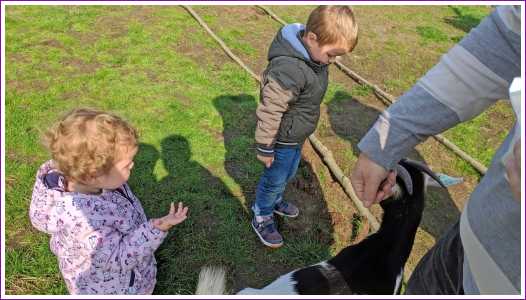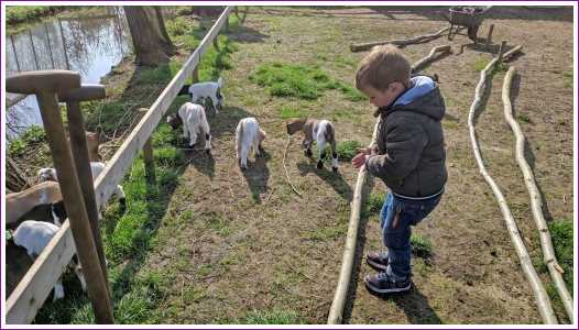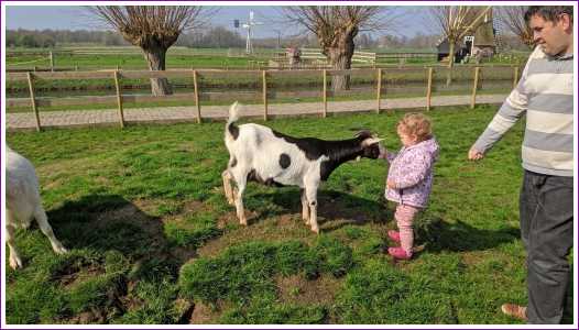 20 maart: Papa was vandaag jarig en dus zijn we vandaag iets leuks gaan doen. We zijn naar kinderboerderij de Kooi geweest. Toen we bij de geitjes aan kwamen lopen was daar een geit bezig met bevallen. Er kwamen zomaar nieuwe geitjes uit. Er was er net eentje geboren, maar toen we dat gingen zeggen en daarna terug kwamen, lagen er al twee geitjes. En er kwam nog meer aan ook. Toen hebben de mensen van de kinderboerderij de geitjes maar even mee in de stal genomen. Wij zijn toen maar gaan spelen in de zandbak.