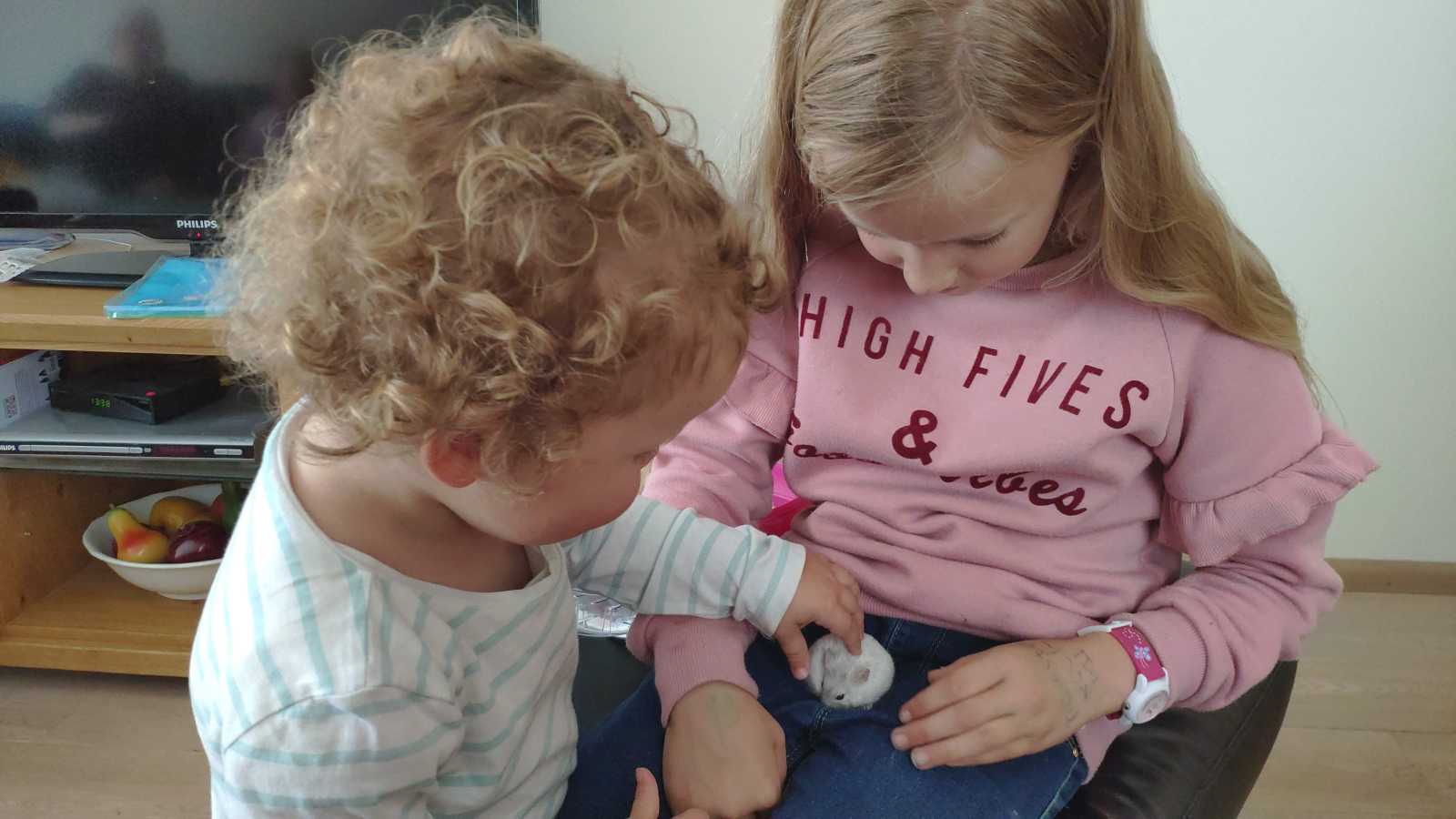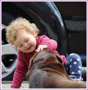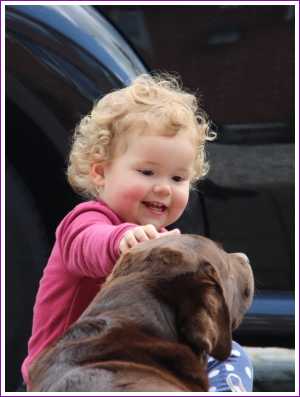 10 mei: Buurvrouw Sylvia kwam vanavond oppassen. Yfke vond met name de hond leuk.........