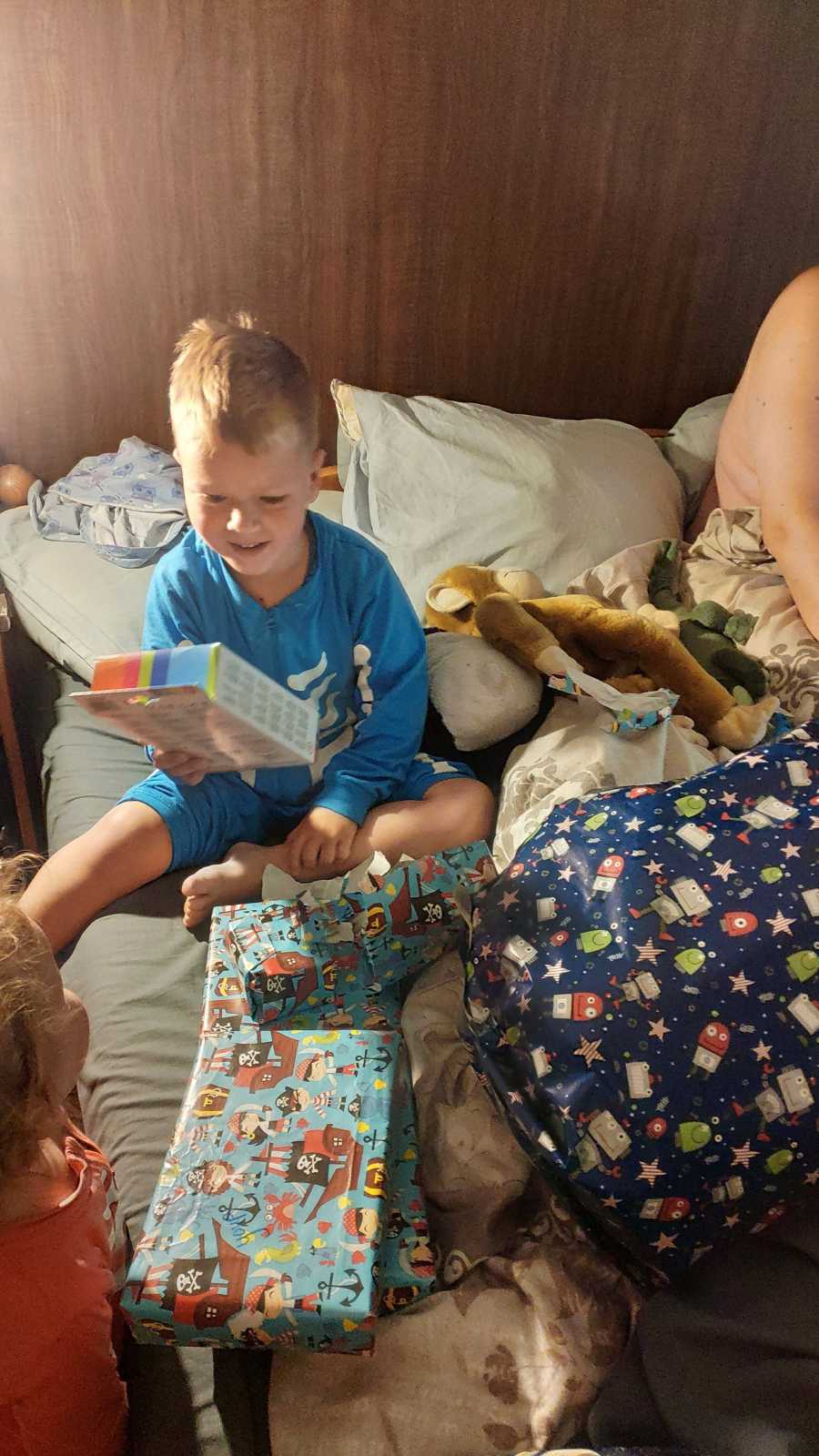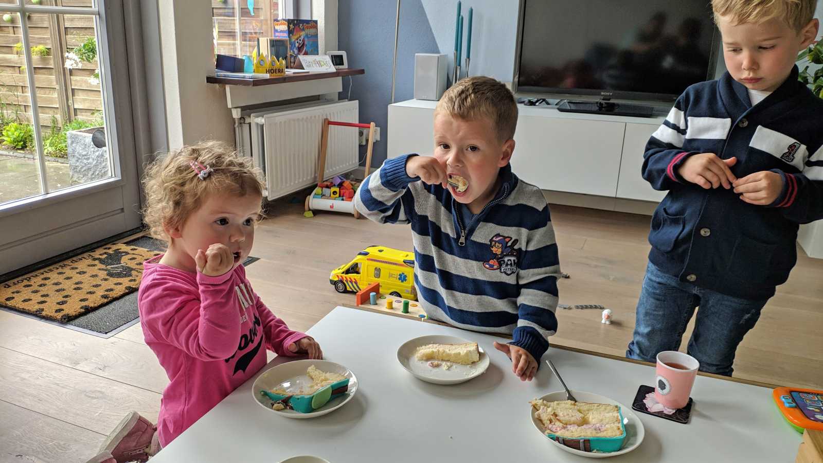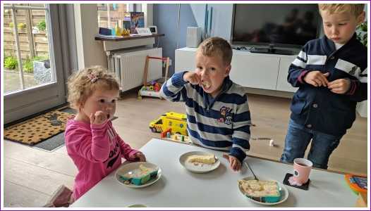 15 mei: Ik ben vandaag jarig en 4 jaar geworden. Nu is het een doordeweekse dag en dus geen goede dag om het ook echt te vieren. Ik mocht vanochtend wat cadeautjes uitpakken op bed. Daarna ging ik voor de laatste keer naar de verkenners op school. Aan het einde van de middag zijn we met Evan en Nevah en opa en oma naar Happy Italy geweest om hier pizza te eten en lekker te spelen.........