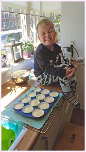 14 mei: We zijn vandaag bij opa en oma naar de speeltuin geweest. 's-middags heb ik met mama thuis cupcakes gebakken om morgen uit te delen op school als ik jarig ben.........