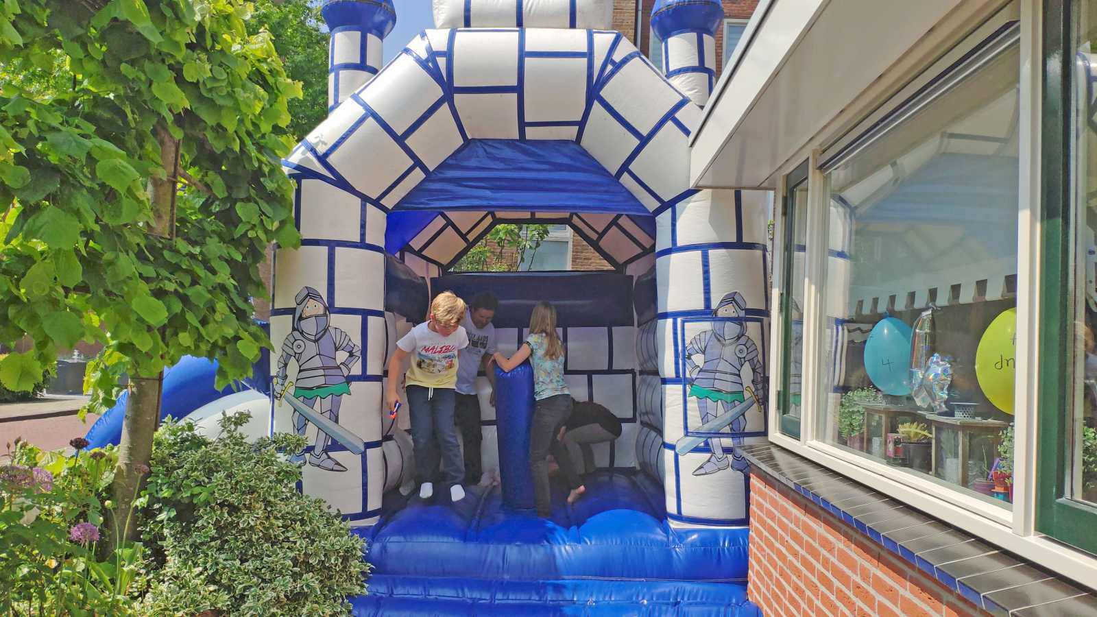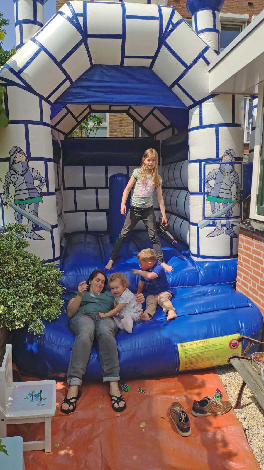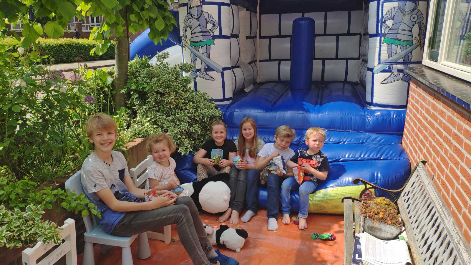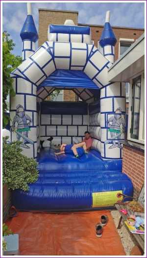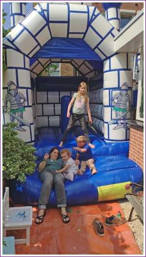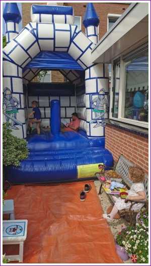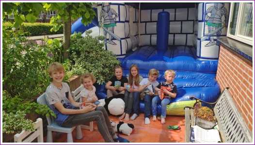 18 mei: Vanochtend kwamen ze thuis een heel groot springkussen brengen dat op de oprit is gezet en wat het hele weekend blijft staan. Alle buurkinderen en andere vriendjes en vriendinnetjes kwamen langs om samen mijn verjaardag te vieren. Aan het eind van de middag hebben we ook nog samen gegeten.........