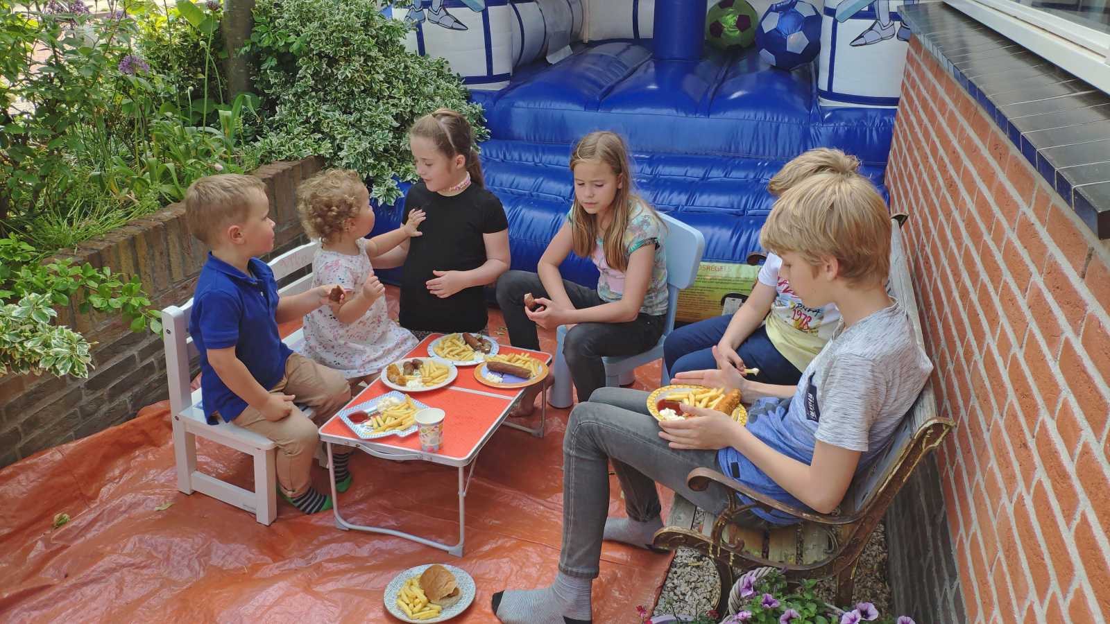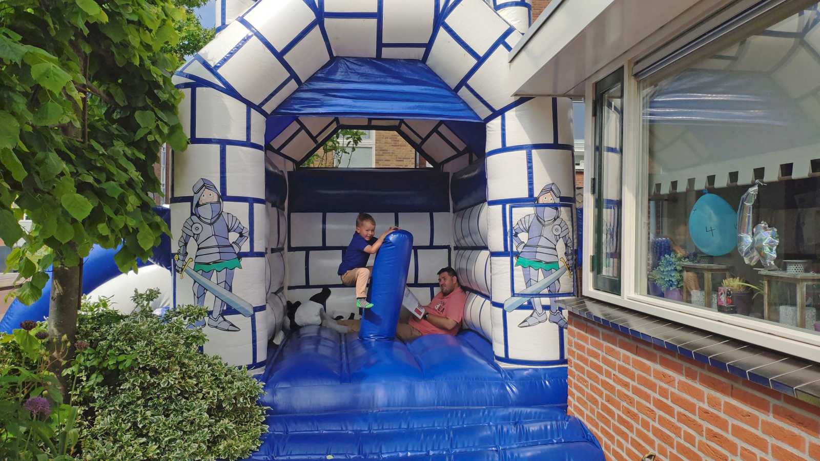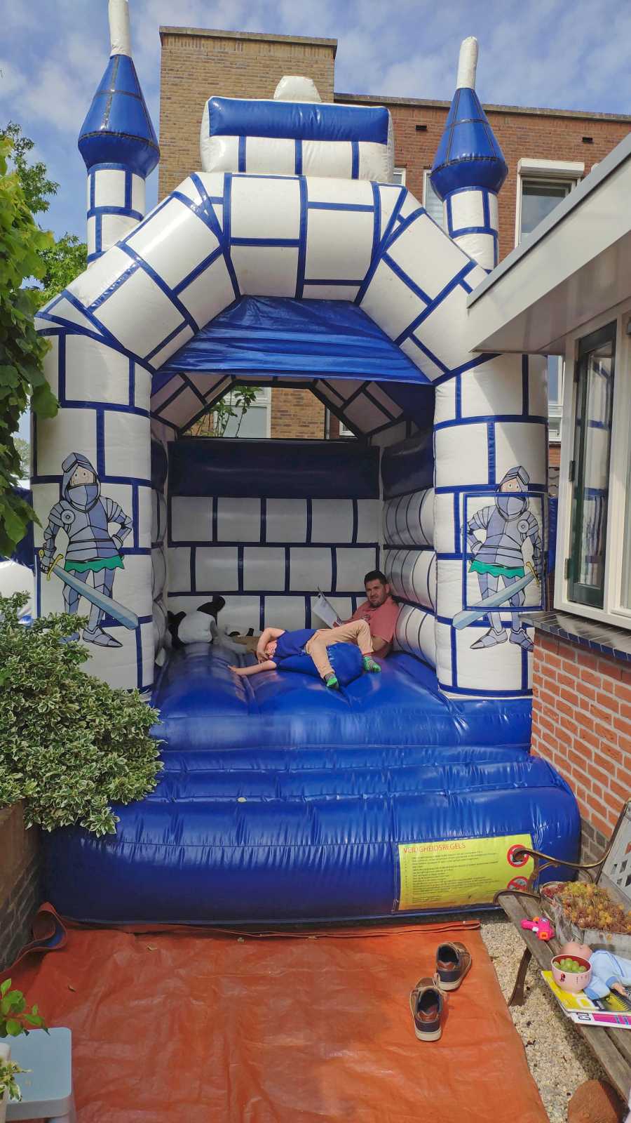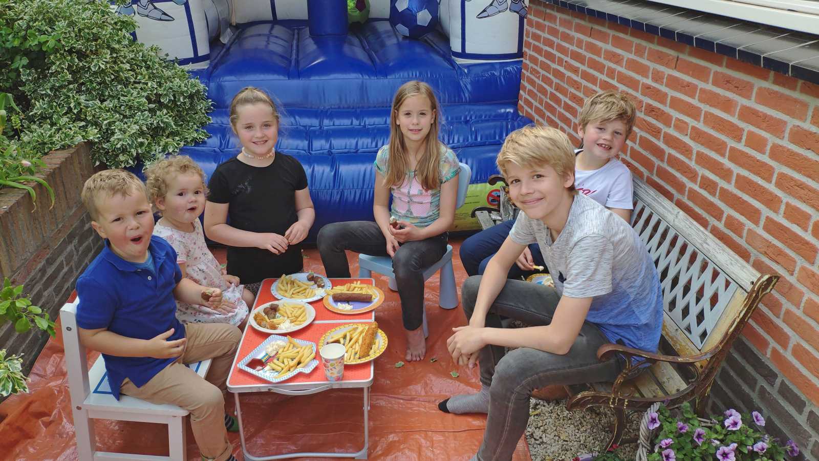 18 mei: Vanochtend kwamen ze thuis een heel groot springkussen brengen dat op de oprit is gezet en wat het hele weekend blijft staan. Alle buurkinderen en andere vriendjes en vriendinnetjes kwamen langs om samen mijn verjaardag te vieren. Aan het eind van de middag hebben we ook nog samen gegeten.........