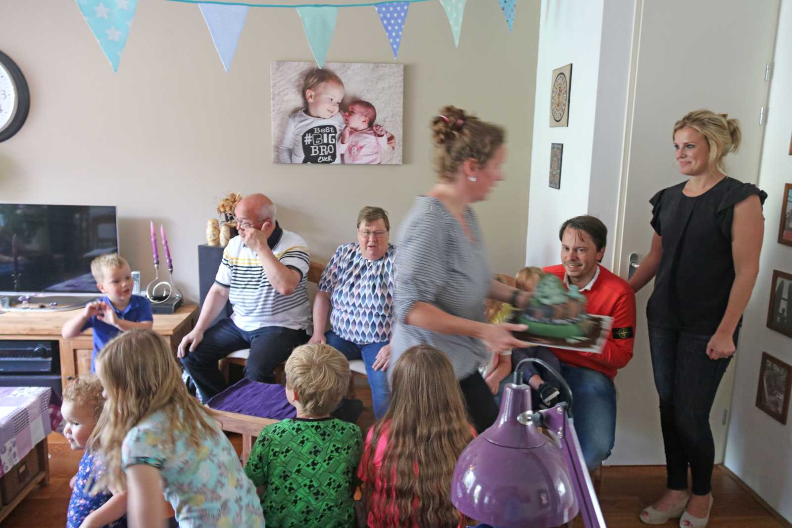 Eerst zijn we vanochtend naar de verjaardag van Lars geweest, daar hebben we lekkere Thomas-taart op. Daarna zijn we naar de Maasoeverspoorweg geweest omdat daar een open dag was. Nadat we alles hadden bekeken zijn we naar opa en oma geweest om ook oma te feliciteren.........