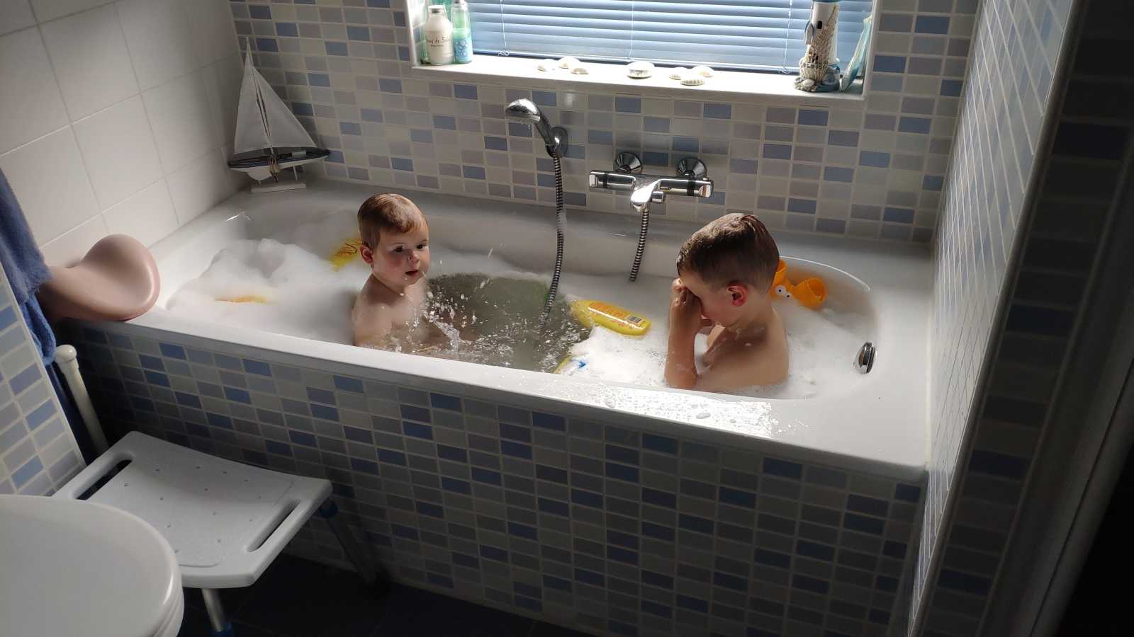 21 mei: We hebben vandaag lekker gespeeld in de zandspeeltuin, maar jah, daarna was badderen ook wel echt nodig.........