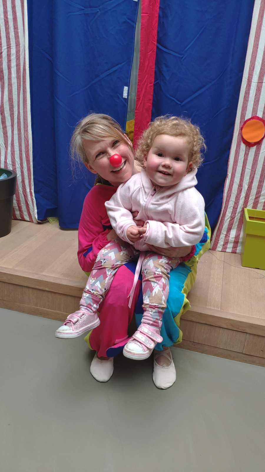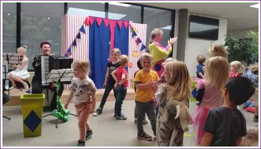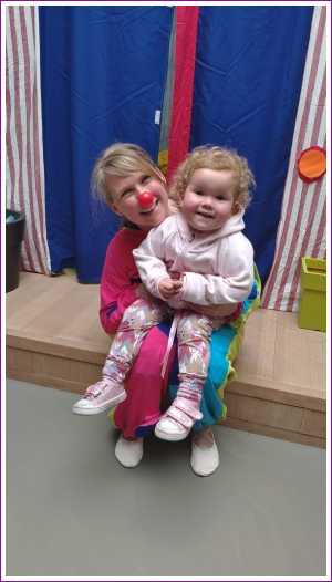 25 mei: Vandaag hebben we een aantal leuke voorstellingen bezocht. Begin middag zijn we in theater 't Kruispunt naar Clowntje Tiereliet geweest die daar in de bibliotheek optrad. Ook Yfke vond het erg leuk en heeft leuk meegedanst.