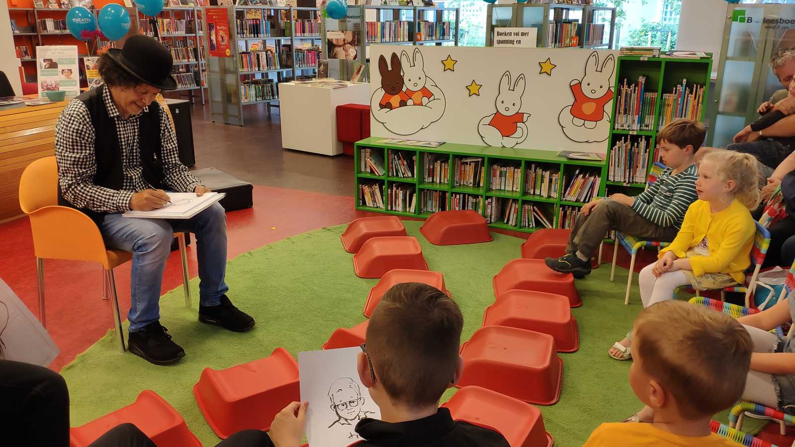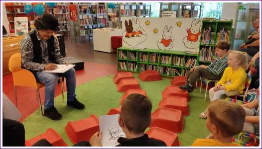 Halverwege de middag ben ik met papa ook nog naar Hakim geweest die juist in de bibliotheek in Carnisselande kwam. Ik heb allerlei dingen meegedaan en ben op de foto geweest. Ook heeft hij mij getekend.........