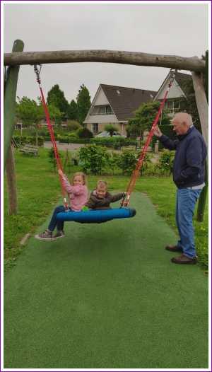 30 mei: Marlou & Puck kwamen vandaag even bij opa en oma en dus mocht de vlag uit en de rode loper gelegd. We zijn samen even naar de speeltuin geweest, we mochten de dwerghamster van Puck aaien en we zijn ook nog naar een springkussen in Dordrecht geweest..........
